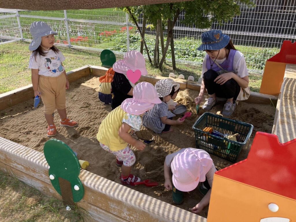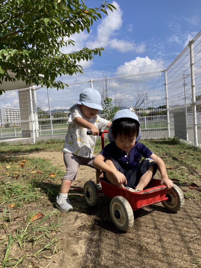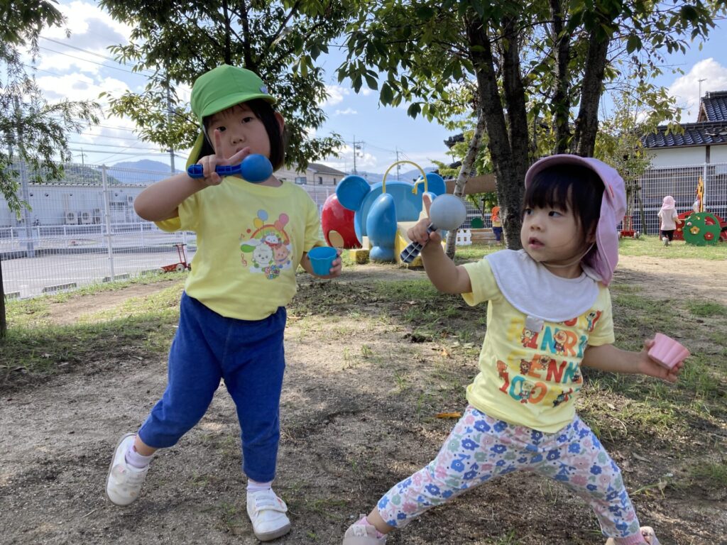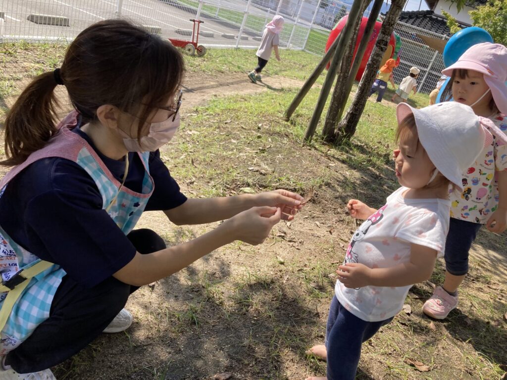 落ち葉やどんぐりなど、自然物を集めたり「どうぞ」のやり取りをしたりと、