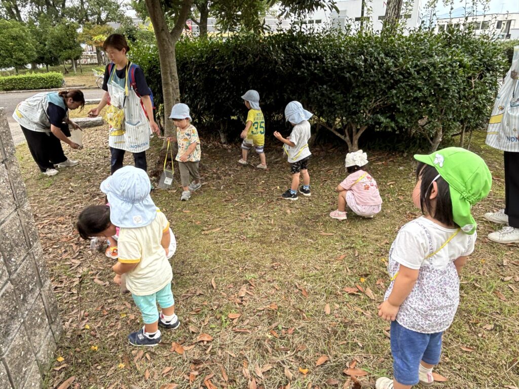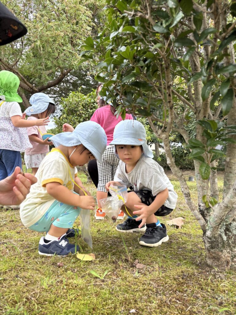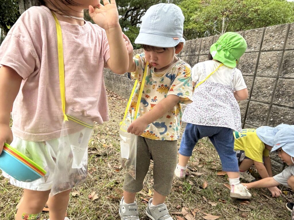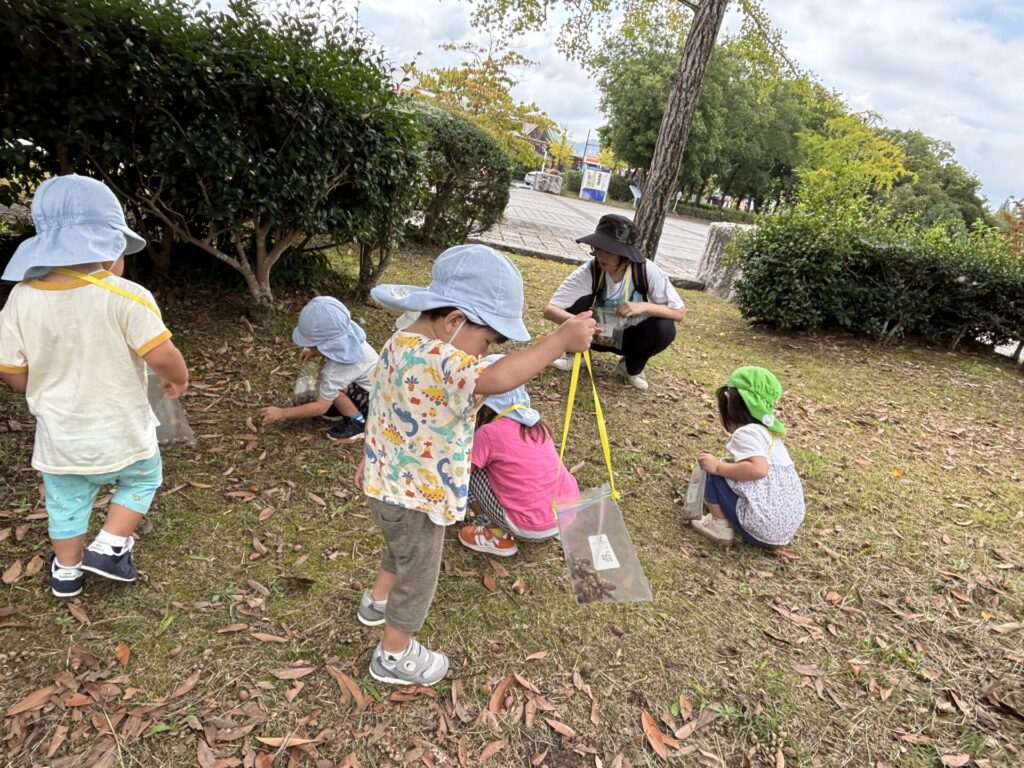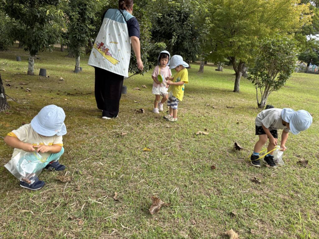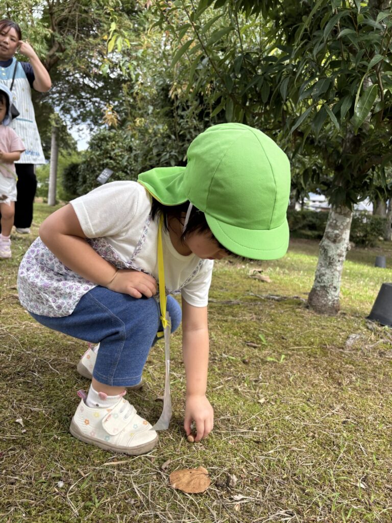 子どもたちは夢中になってどんぐりを拾っていました。