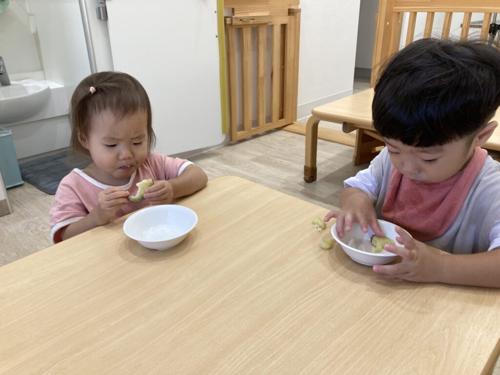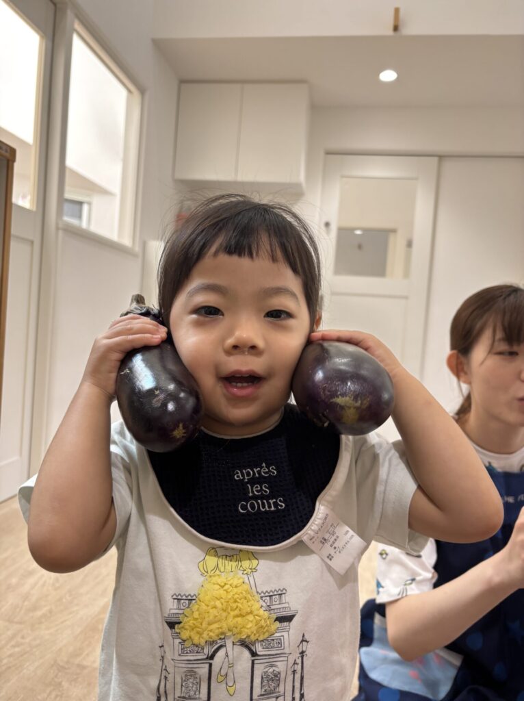 食べてみた子に「なすびさんが喜んでるね」と言うと、