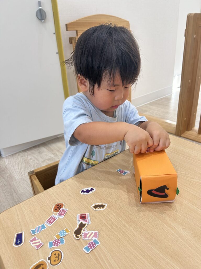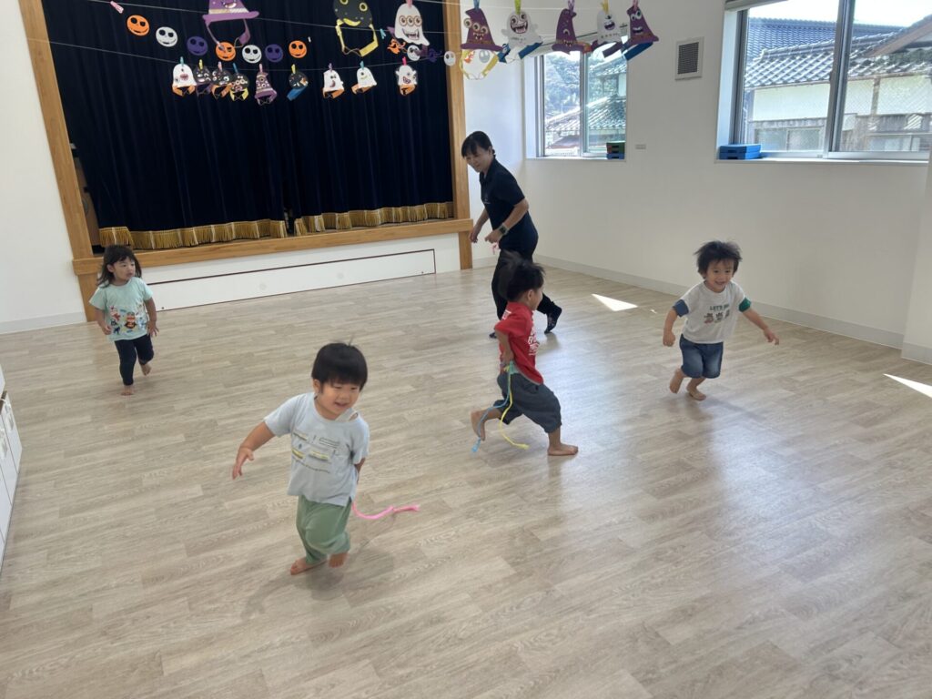 今日もハロウィンの製作をしたり、園庭あそびをしたりと、