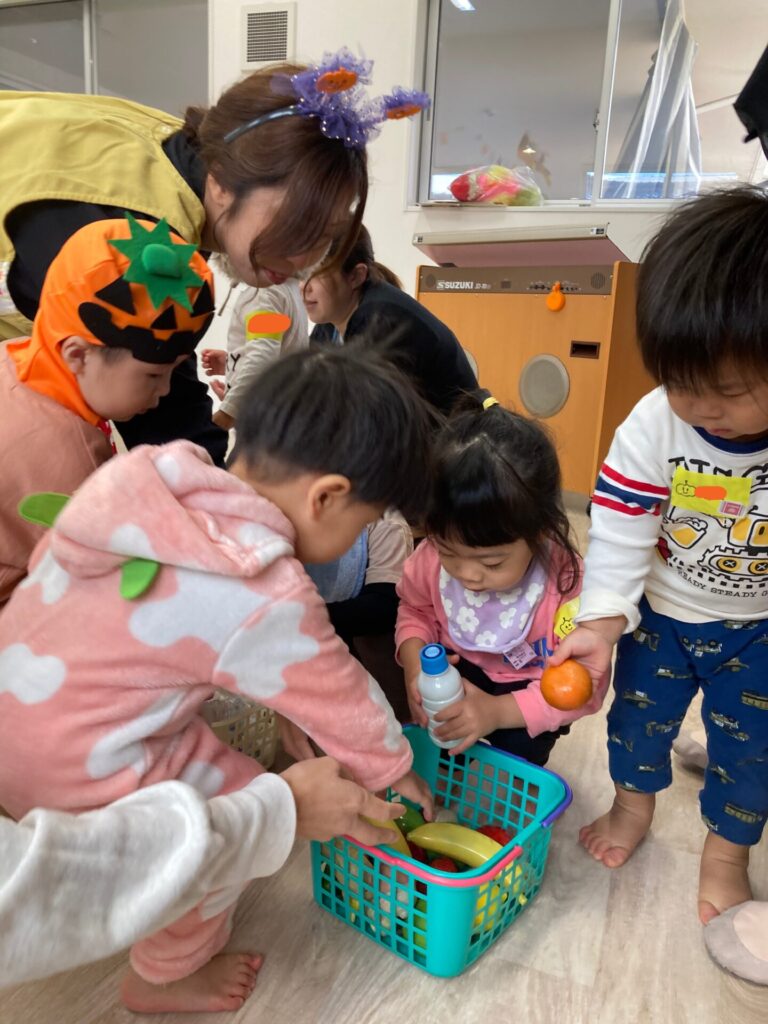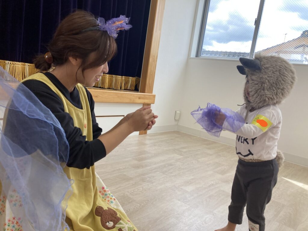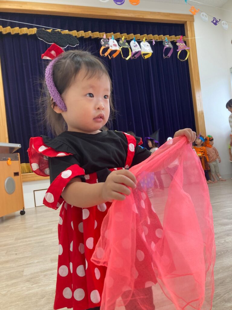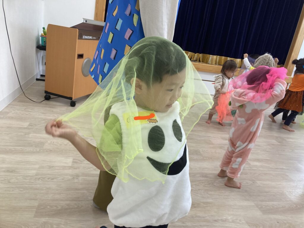仮装を持ってきていなくても、保育園にあるものや自分で作ったものがあるので、