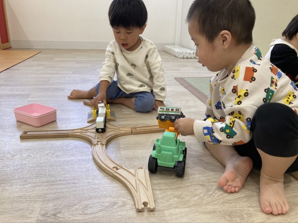 一緒になってあそぶ中でなつめ組やかえで組の子たちは、