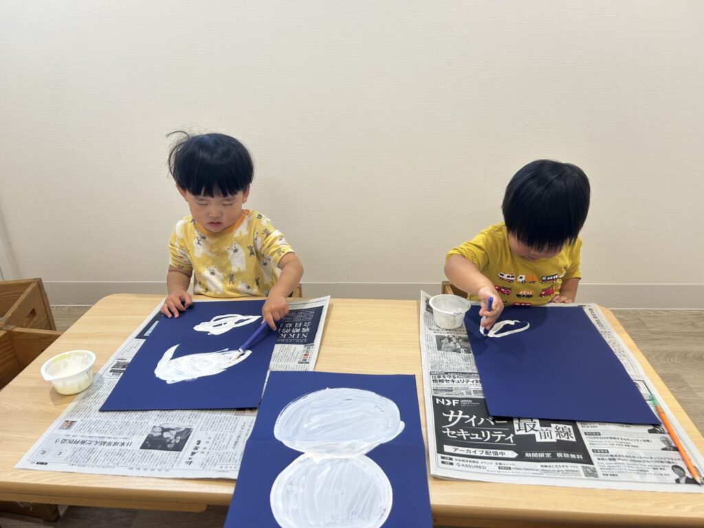 絵の具の伸びや筆の線も楽しみながら、その子なりの形になっているようです。