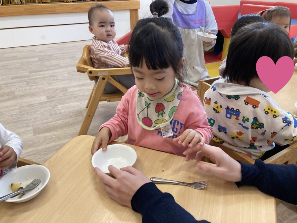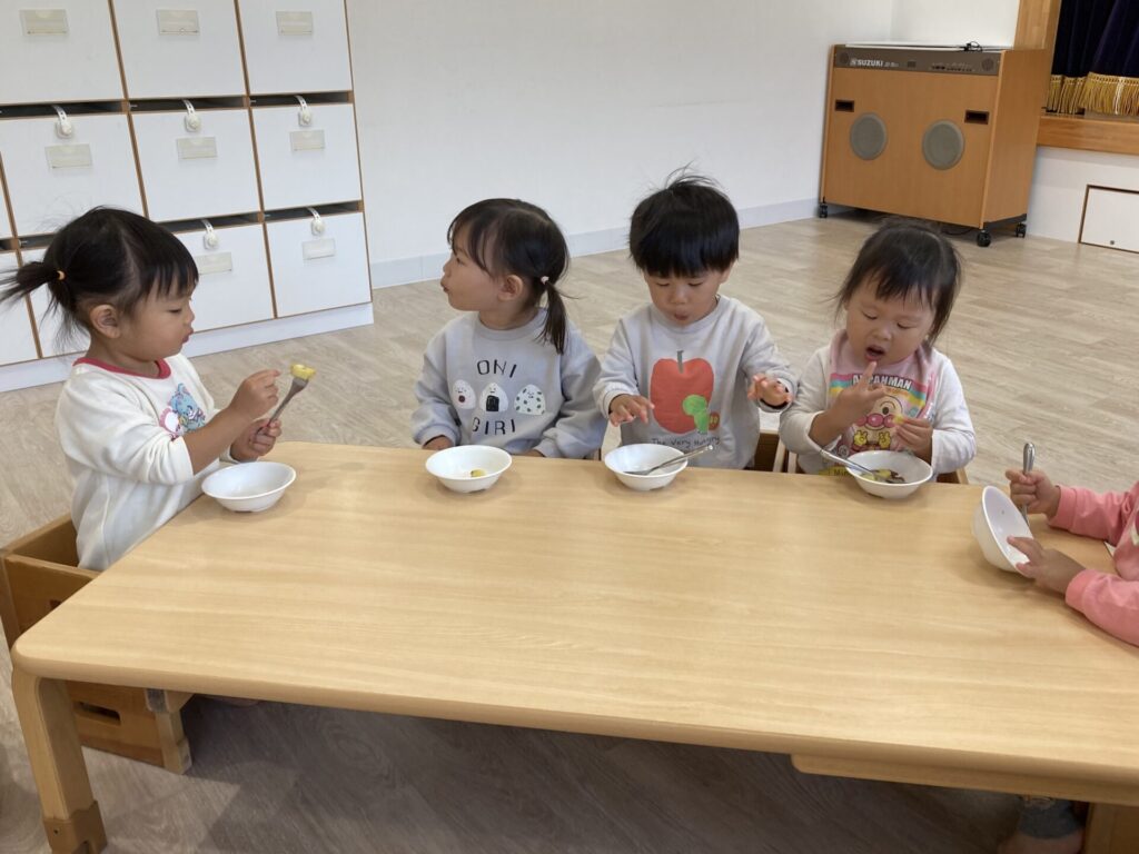 子どもたちもフーフーしながら慎重に食べ始めました。