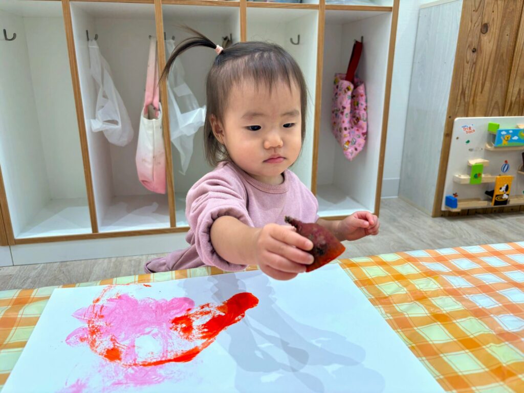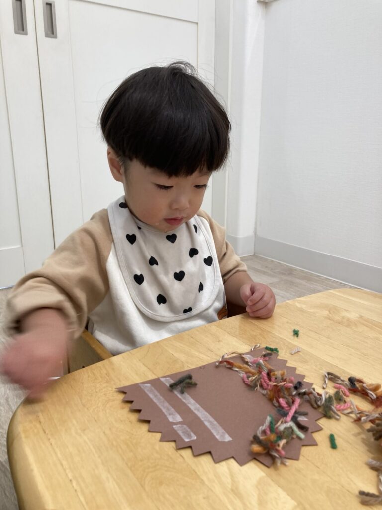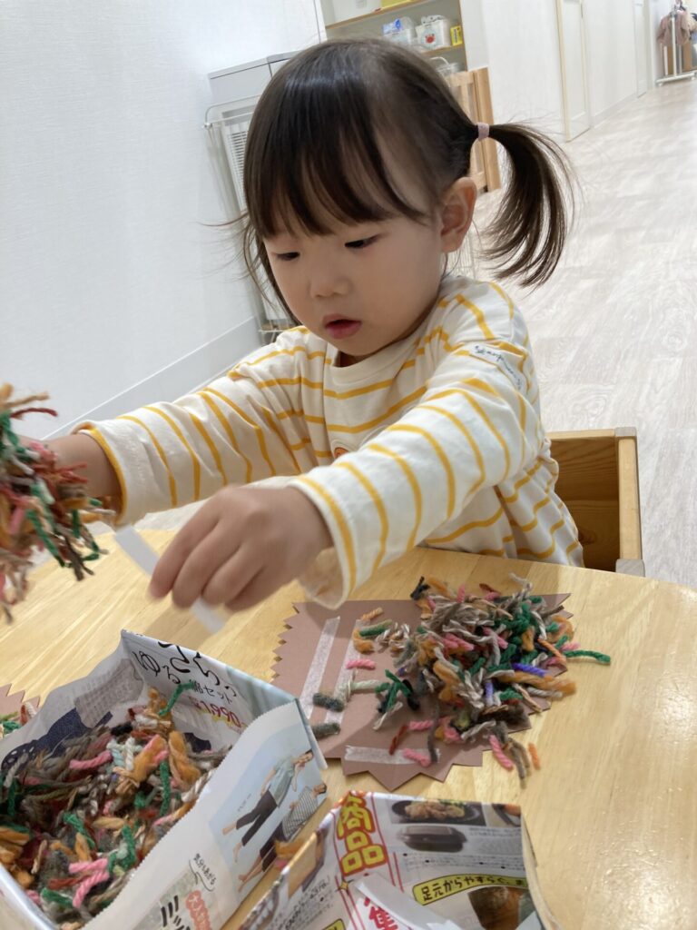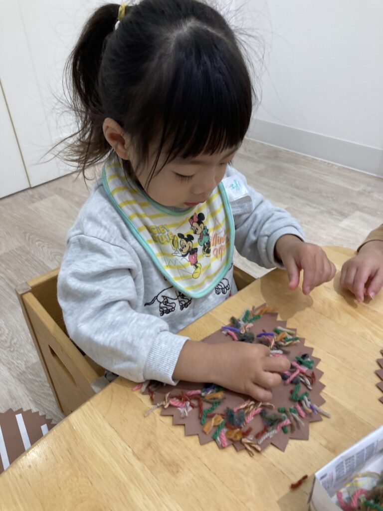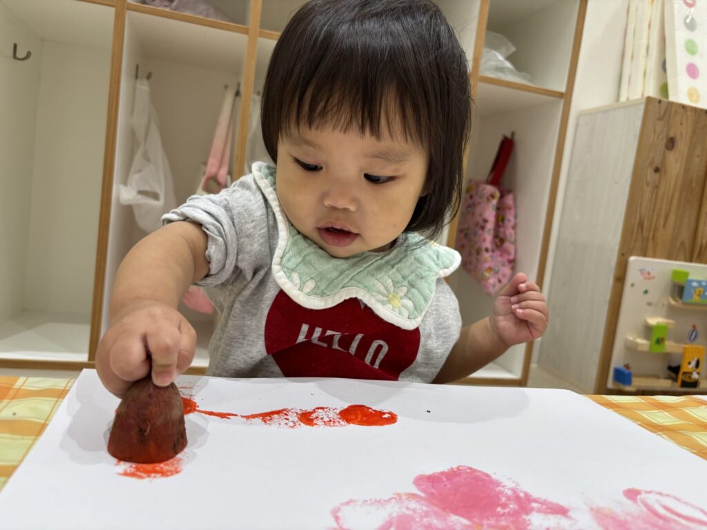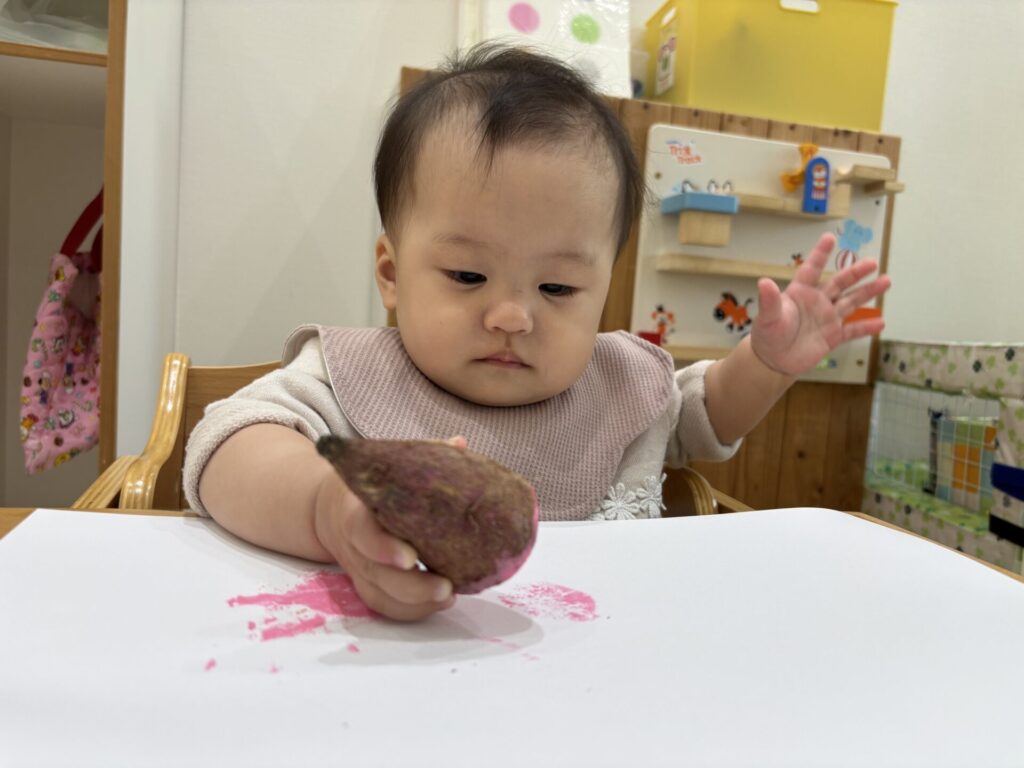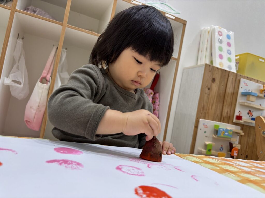 お芋をギュッと押して、しっかりかわいい形が画用紙に付きました。
