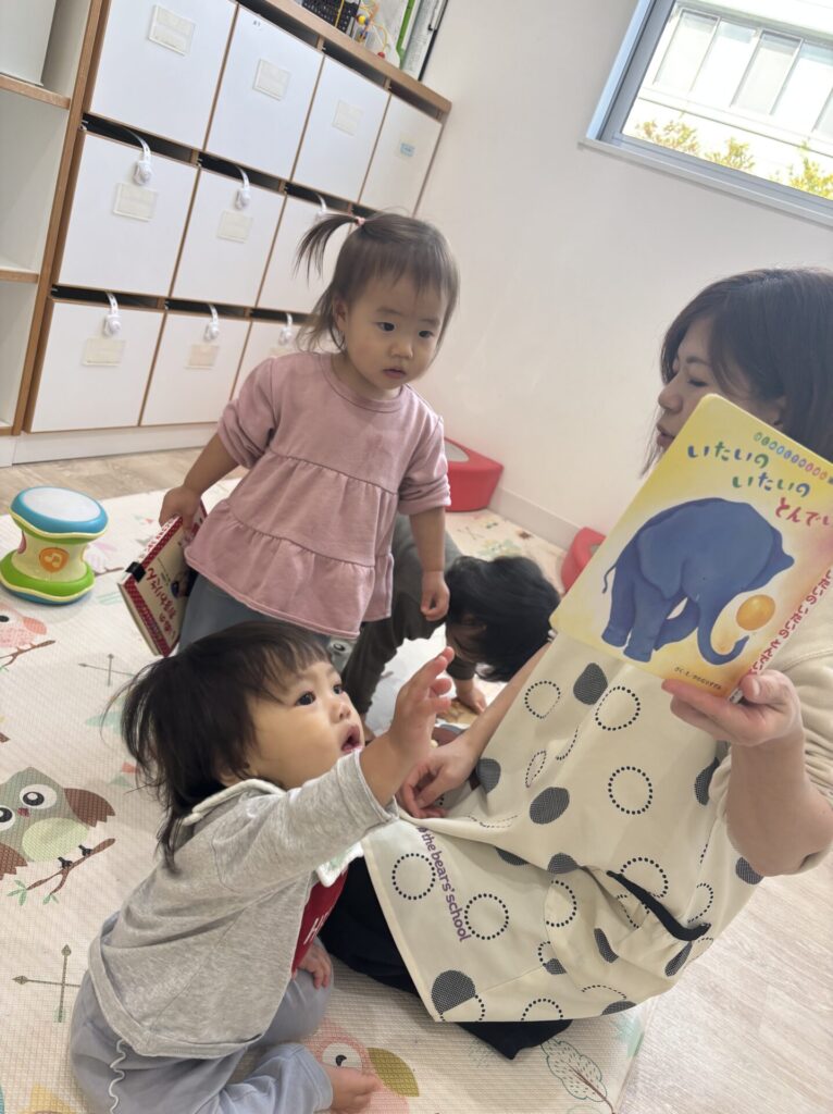 絵本を読んでいると段々と子どもたちが集まってきます。