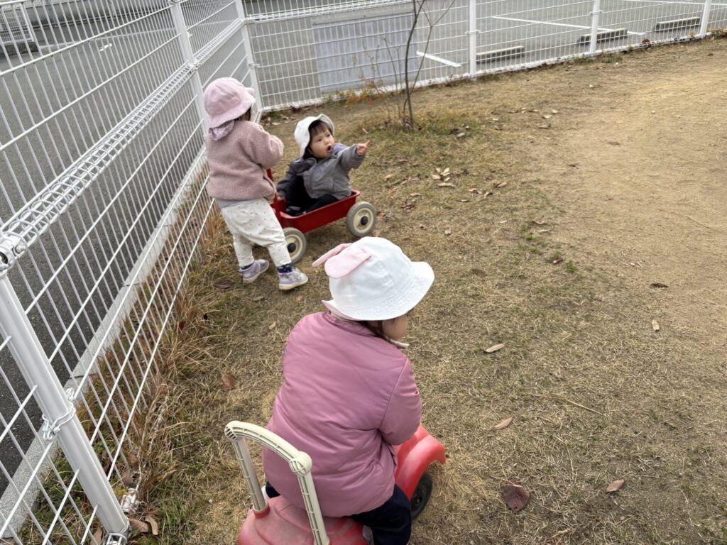遊びながらも、お友達の様子をちょっと見に来るのがかわいいです♥️
