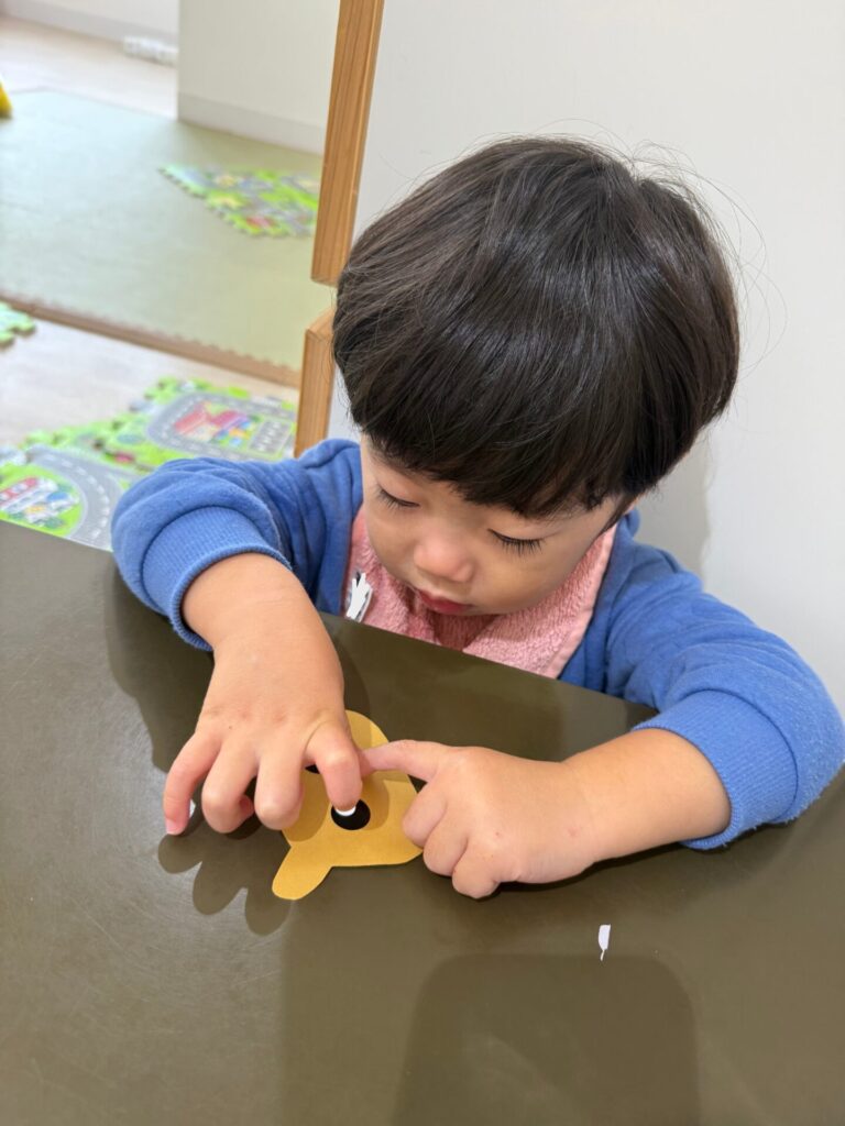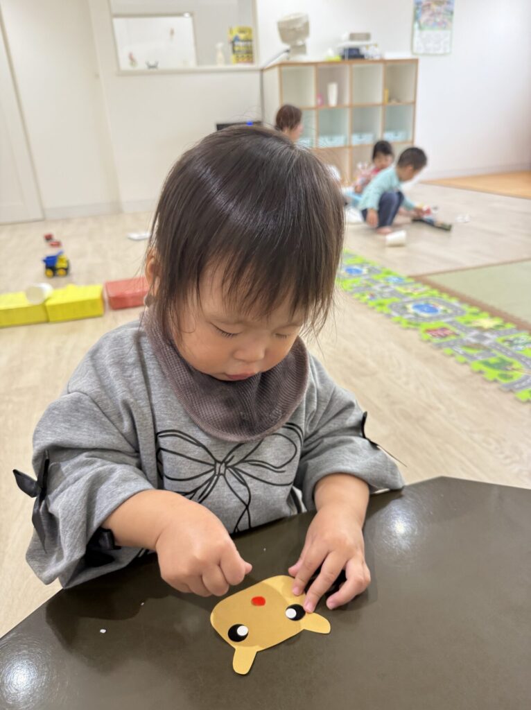 目や鼻の位置も、考えながら真剣に貼っていました。