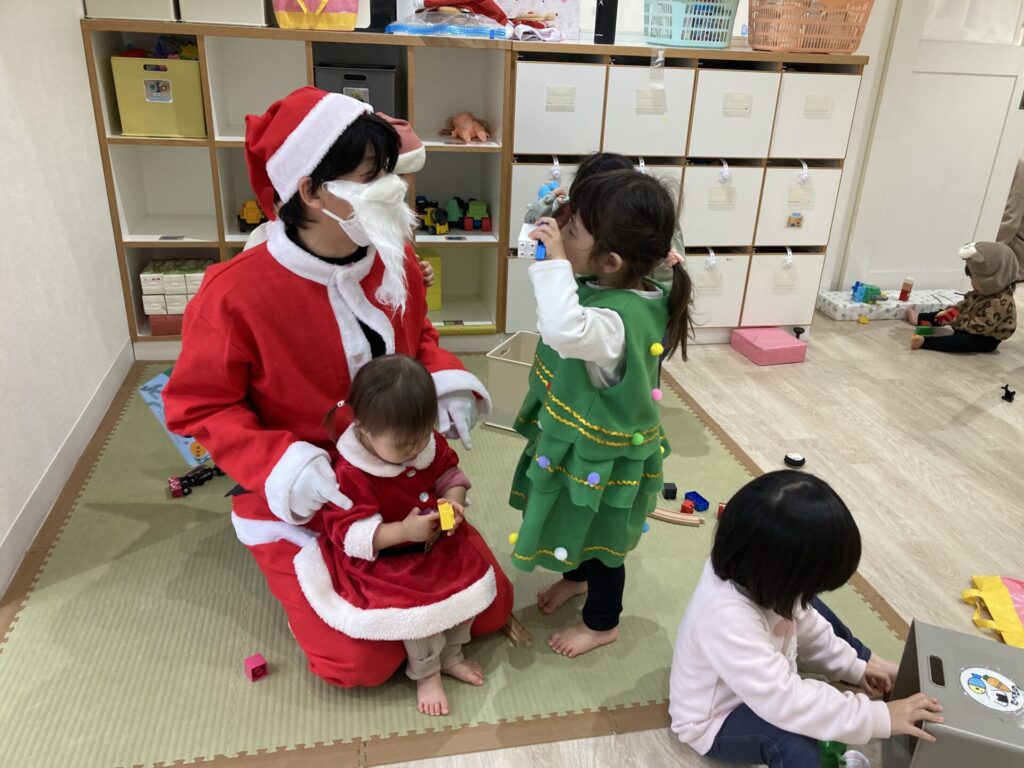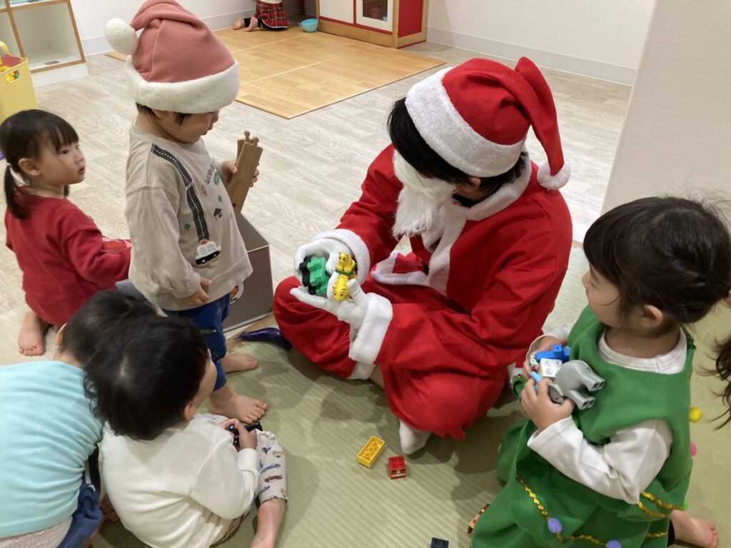 サンタさんと、お給食の時間まで一緒に遊びました。