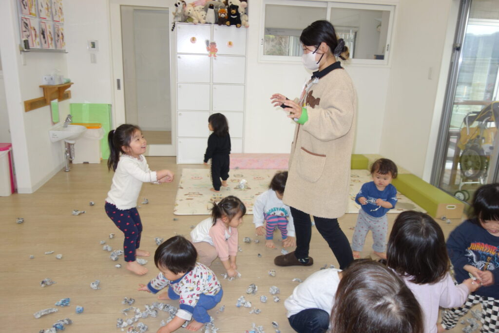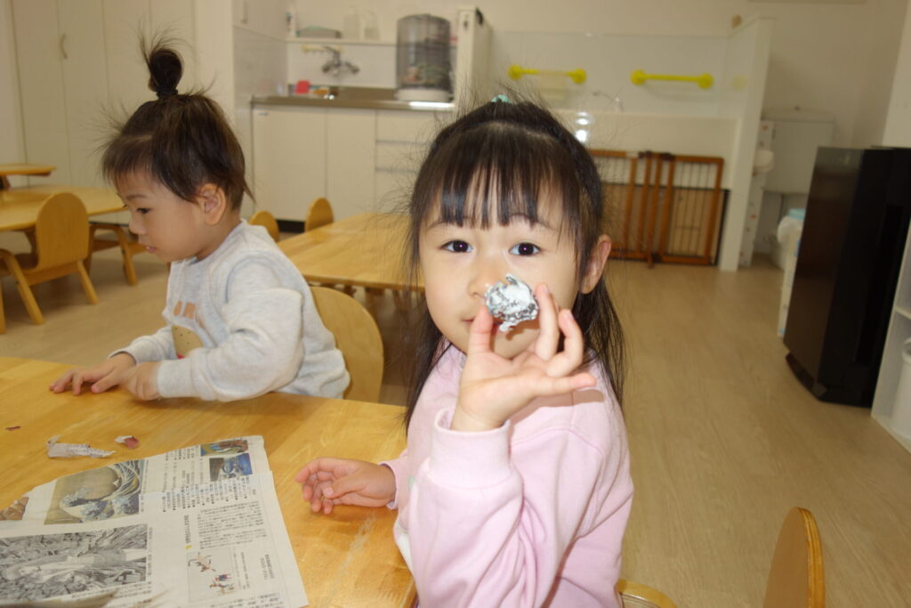 かりん組は節分の豆を作るのを手伝ってくれました。