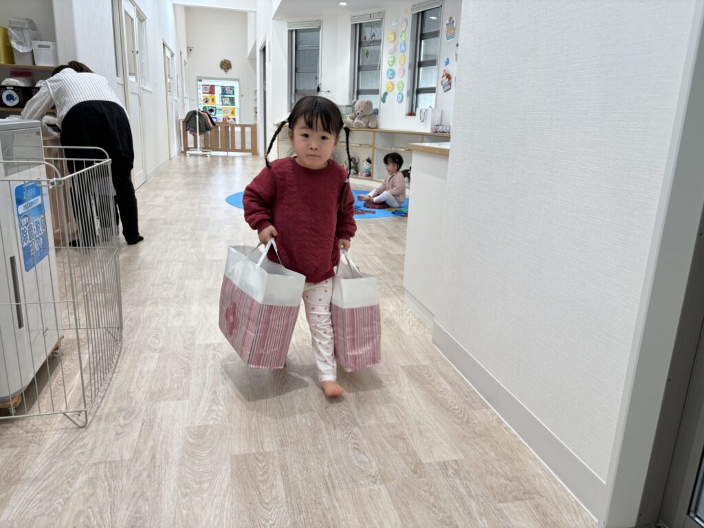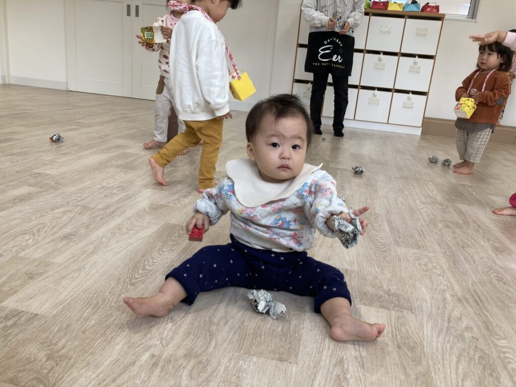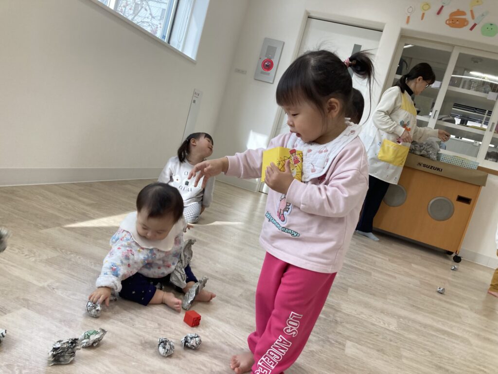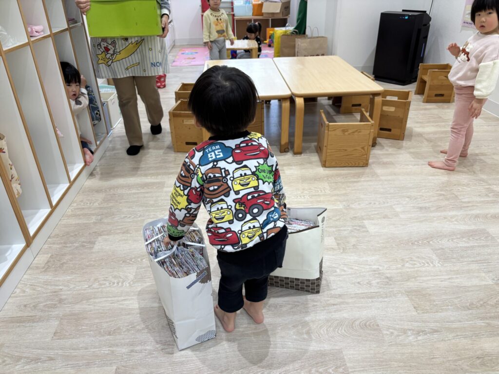 「お片付けするよー」と声を掛けると、お片付けもとっても上手に集めてくれました😄