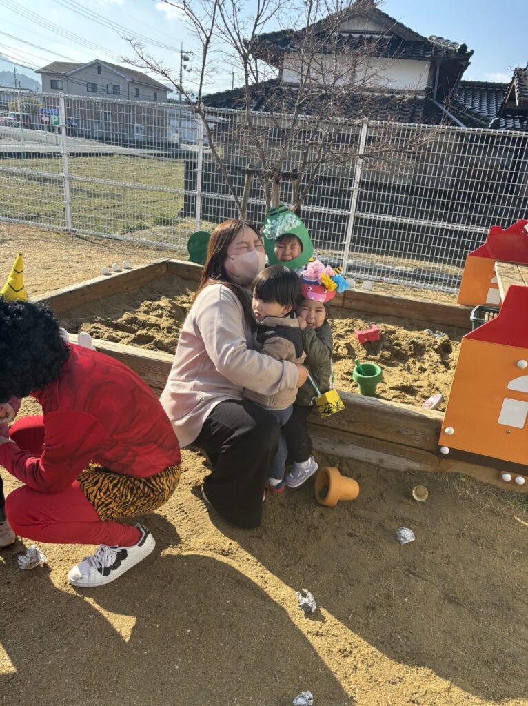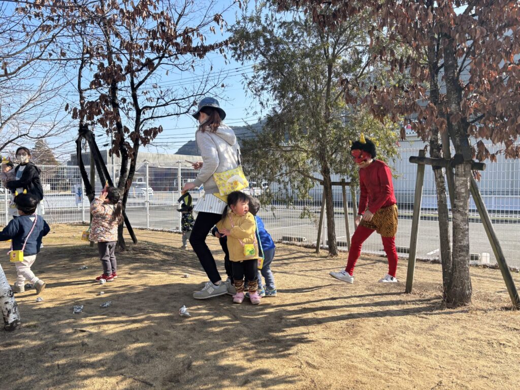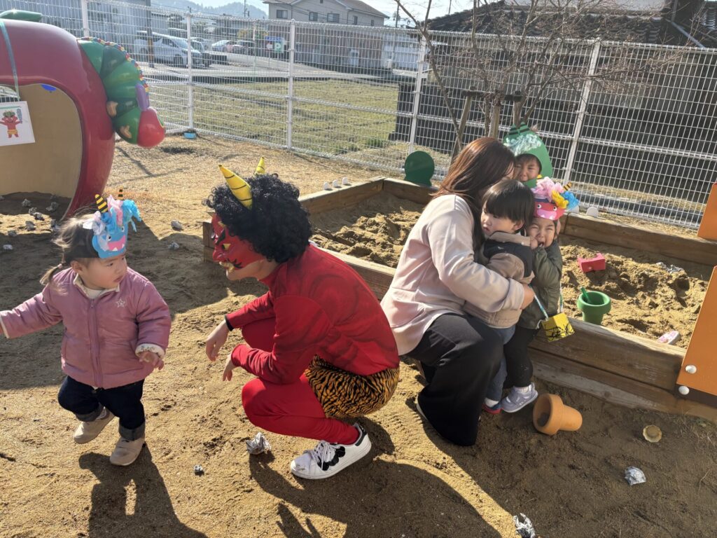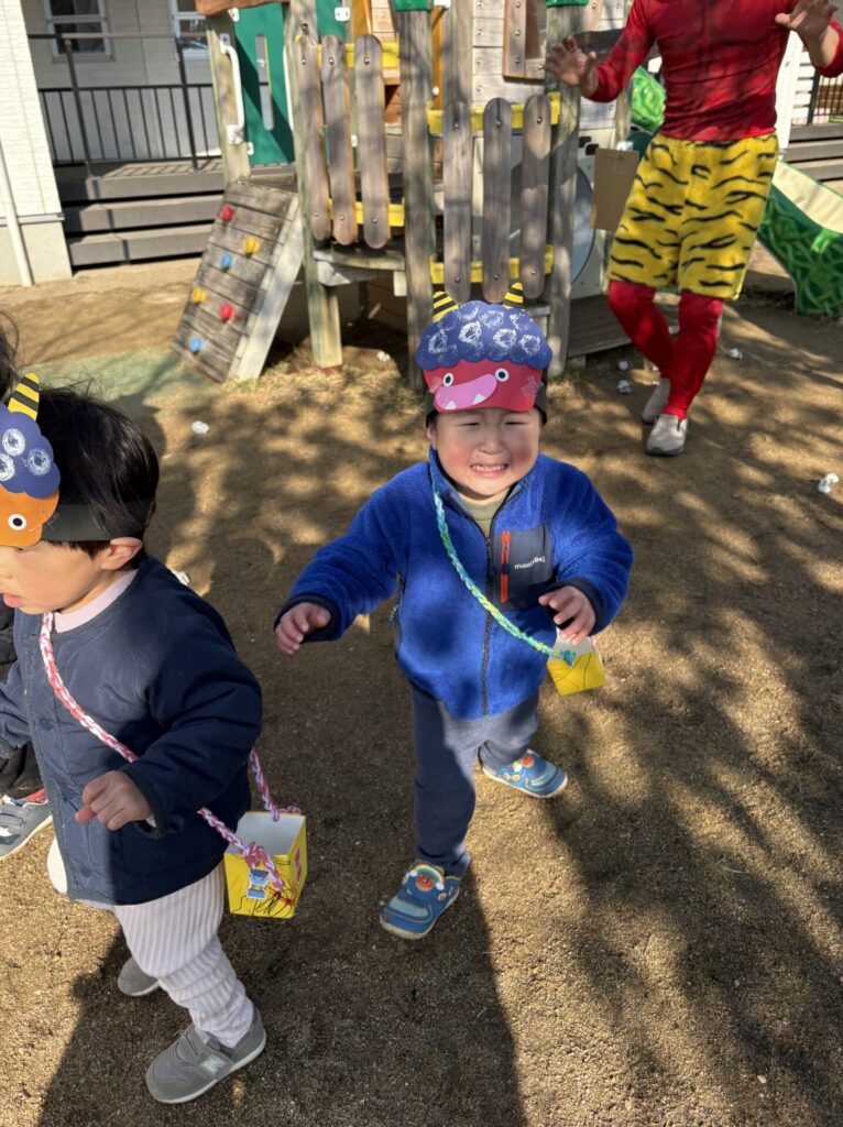 優しい鬼さんと園庭でたくさん遊んでもらいました✨