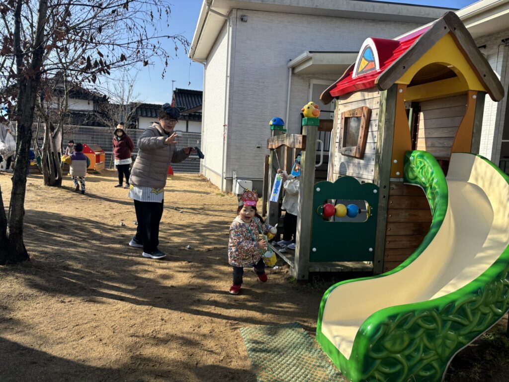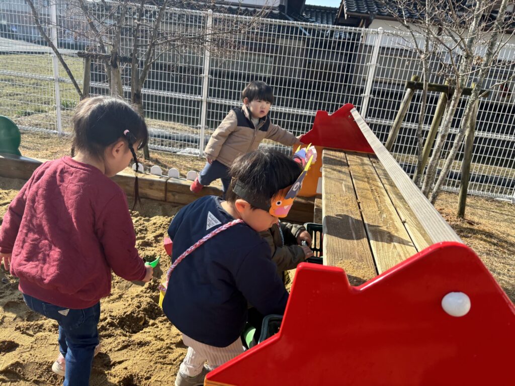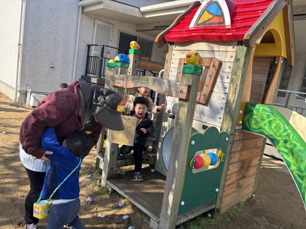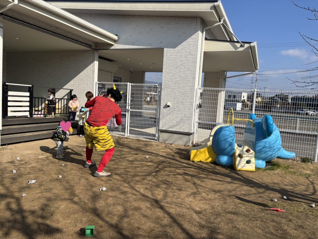 優しい鬼さんと園庭でたくさん遊んでもらいました✨