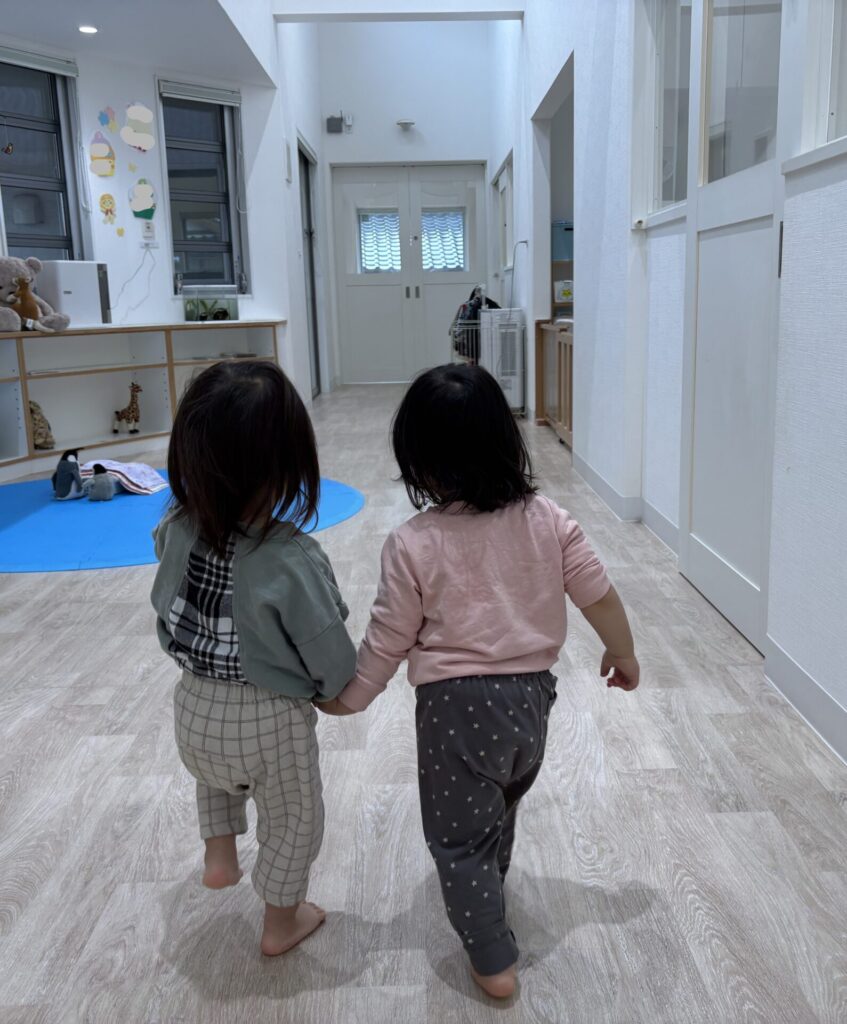 雛人形作りの後はホールへ。手をつないでホールへ向かう、かわいい後ろ姿です💕