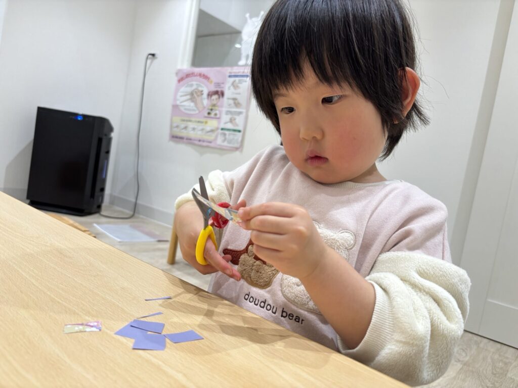 両面テープの剥離紙を外すのはちょっとまだ難しいですが、挑戦していました。
