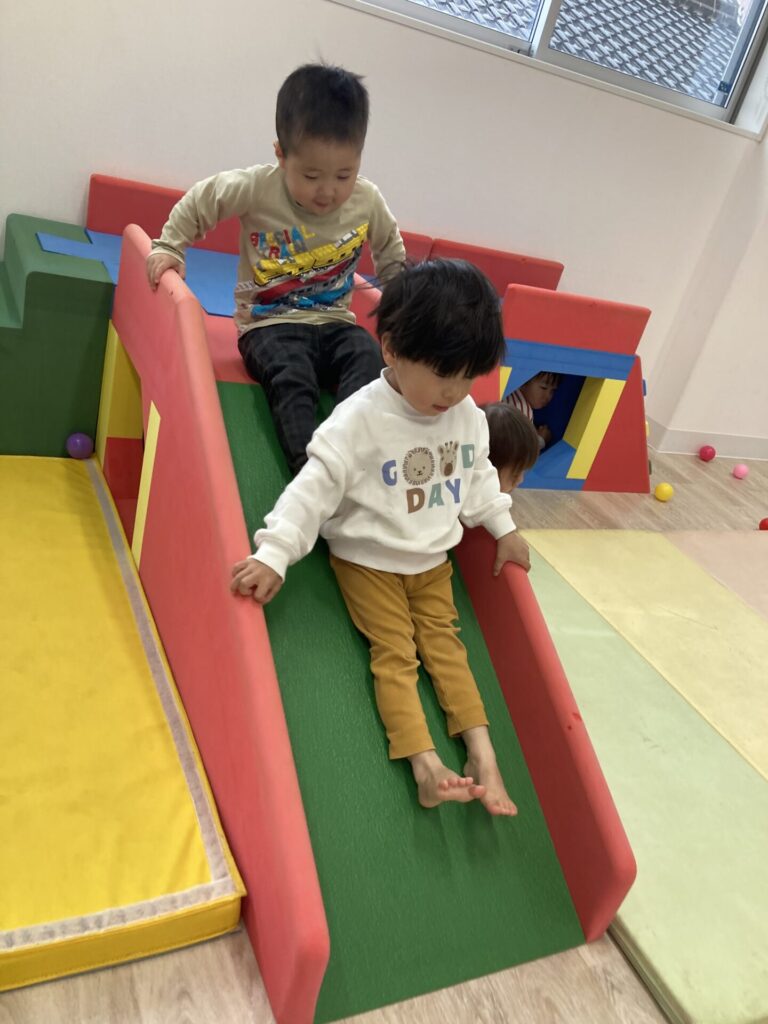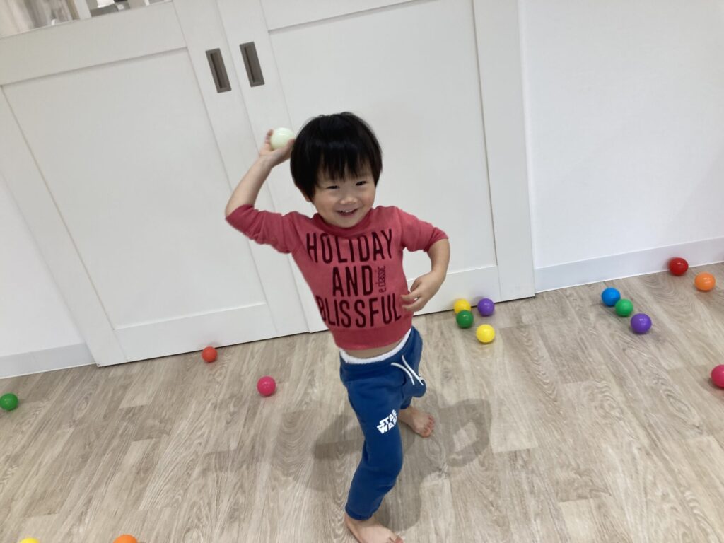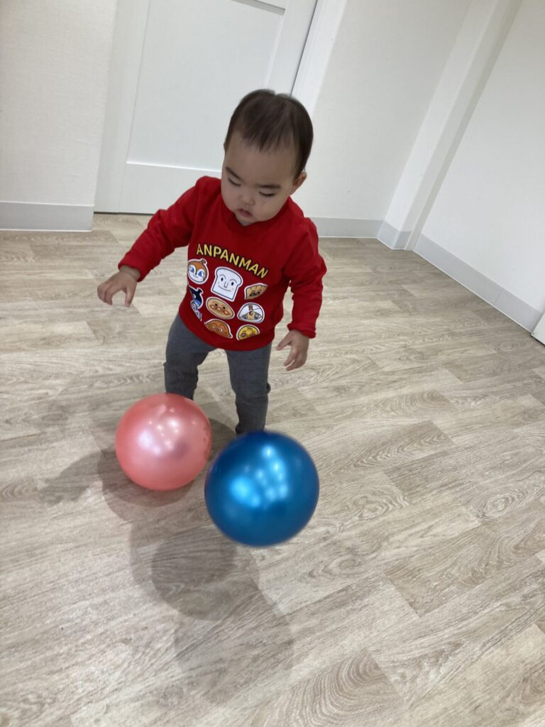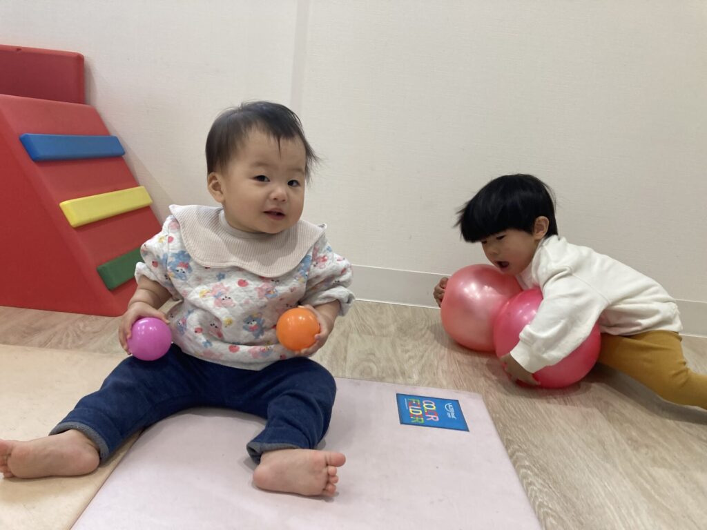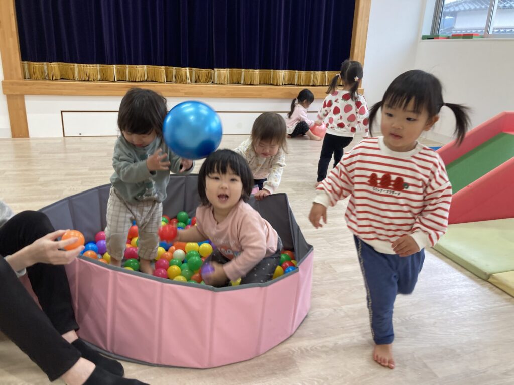 ホールでは、たくさんのボールやボールプールで遊びました。