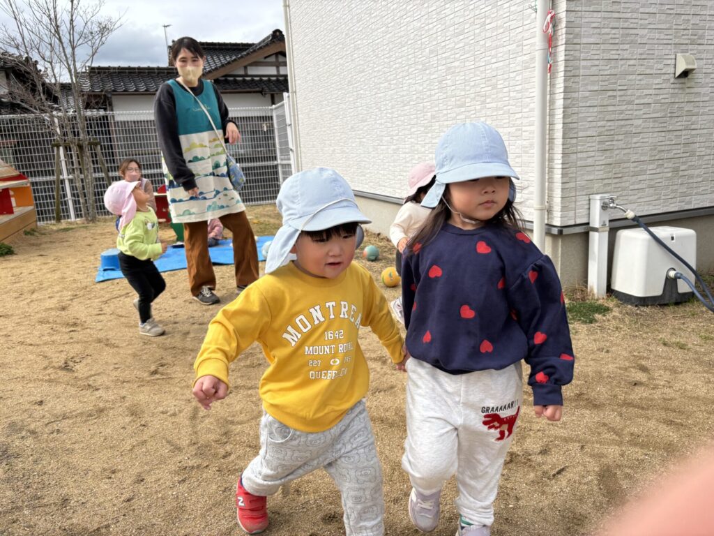 朝おやつの後は園庭でたくさん遊びました😊