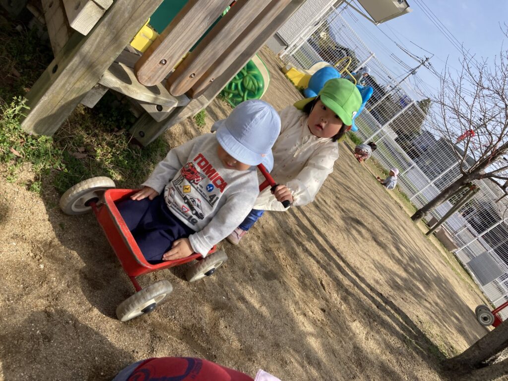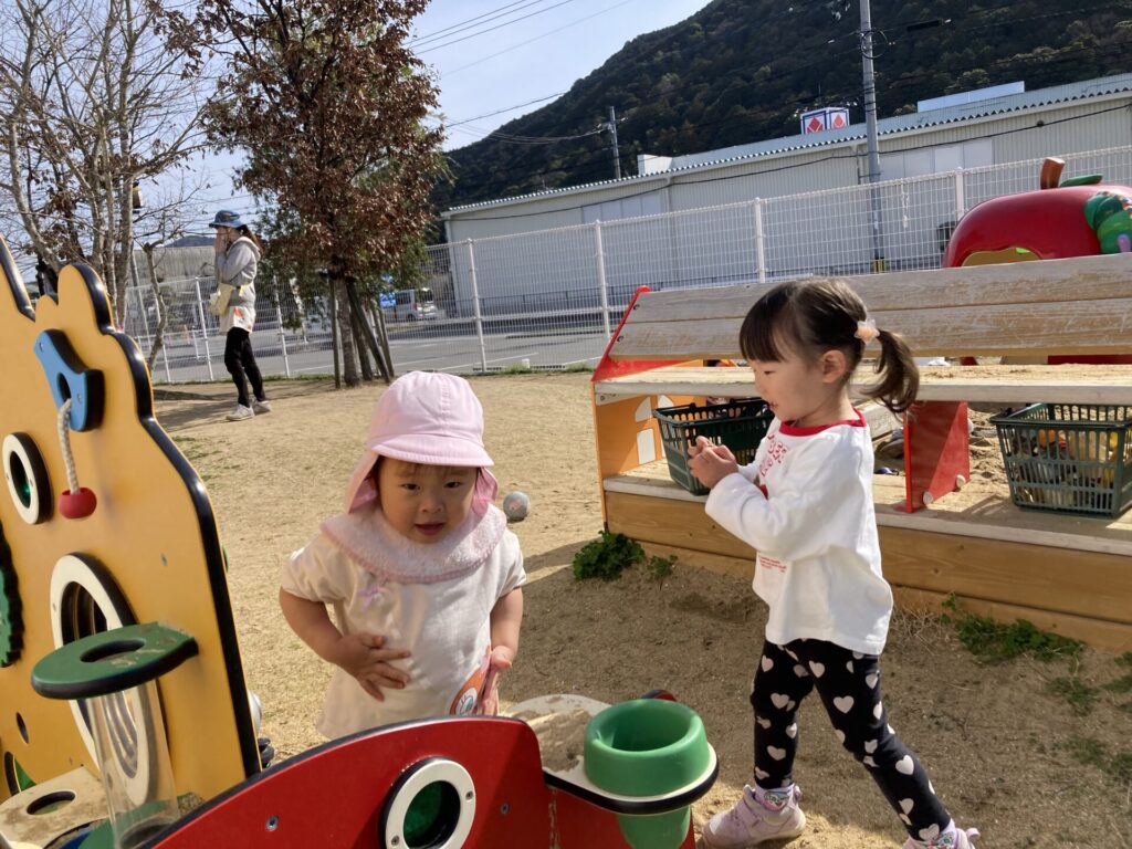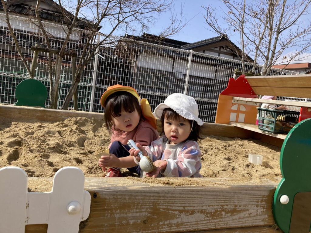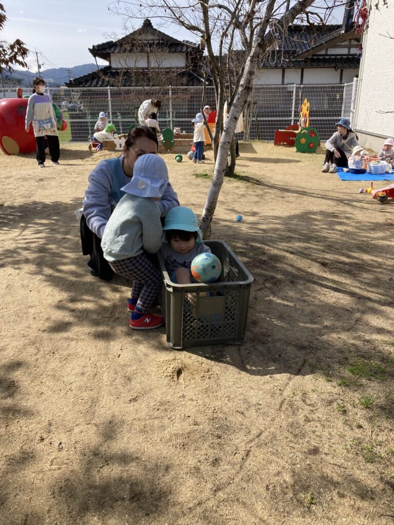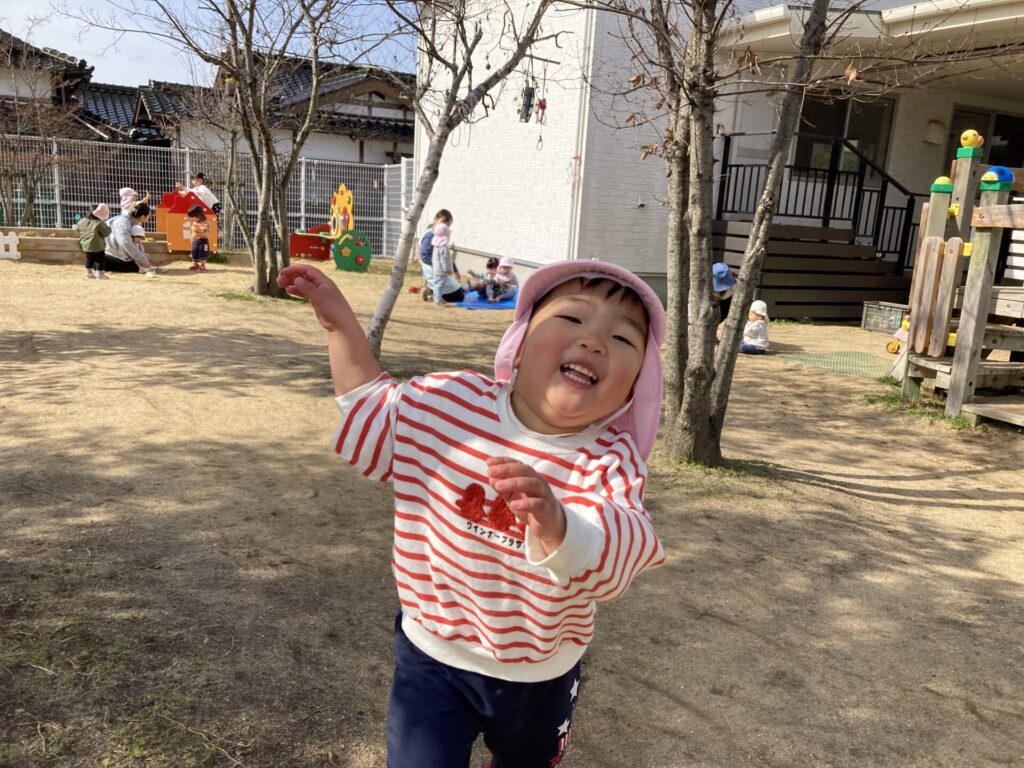 園庭はぽかぽか暖かく、