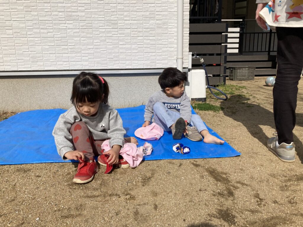 ちゃんと靴や靴下を脱いでいるのがかわいいですね❤️