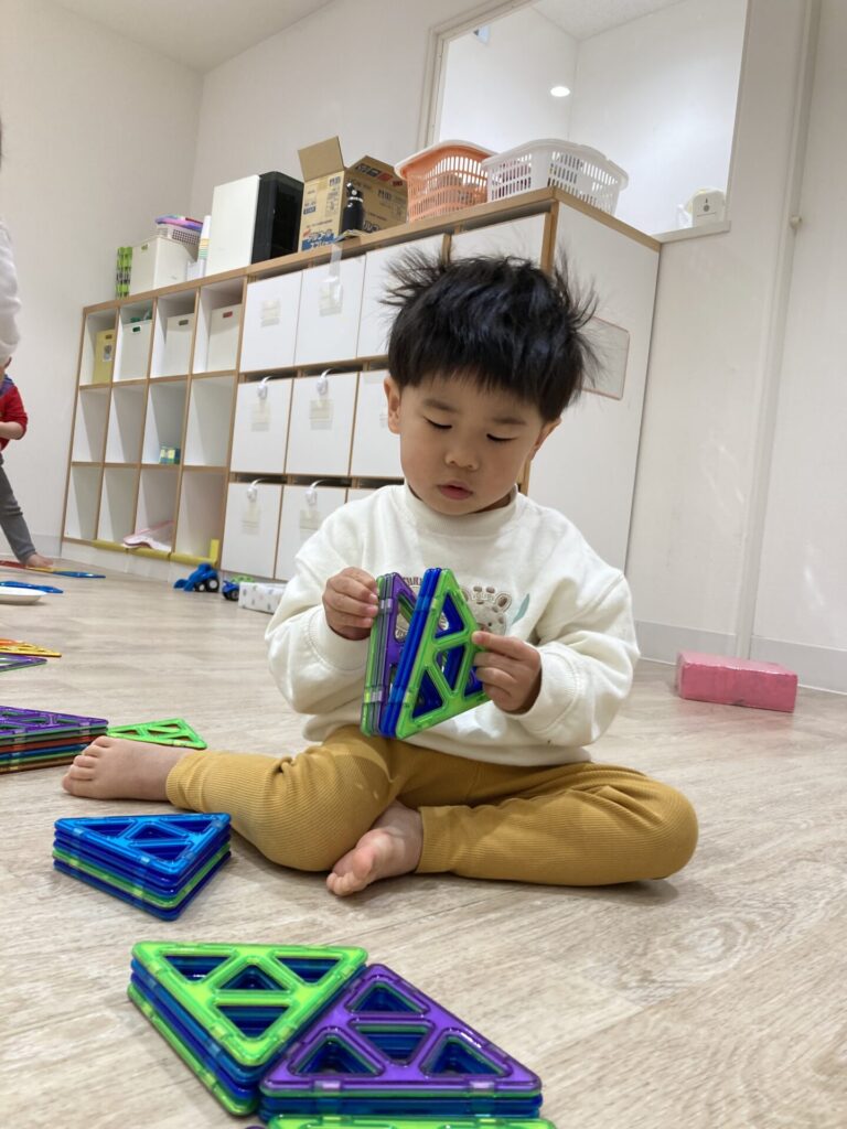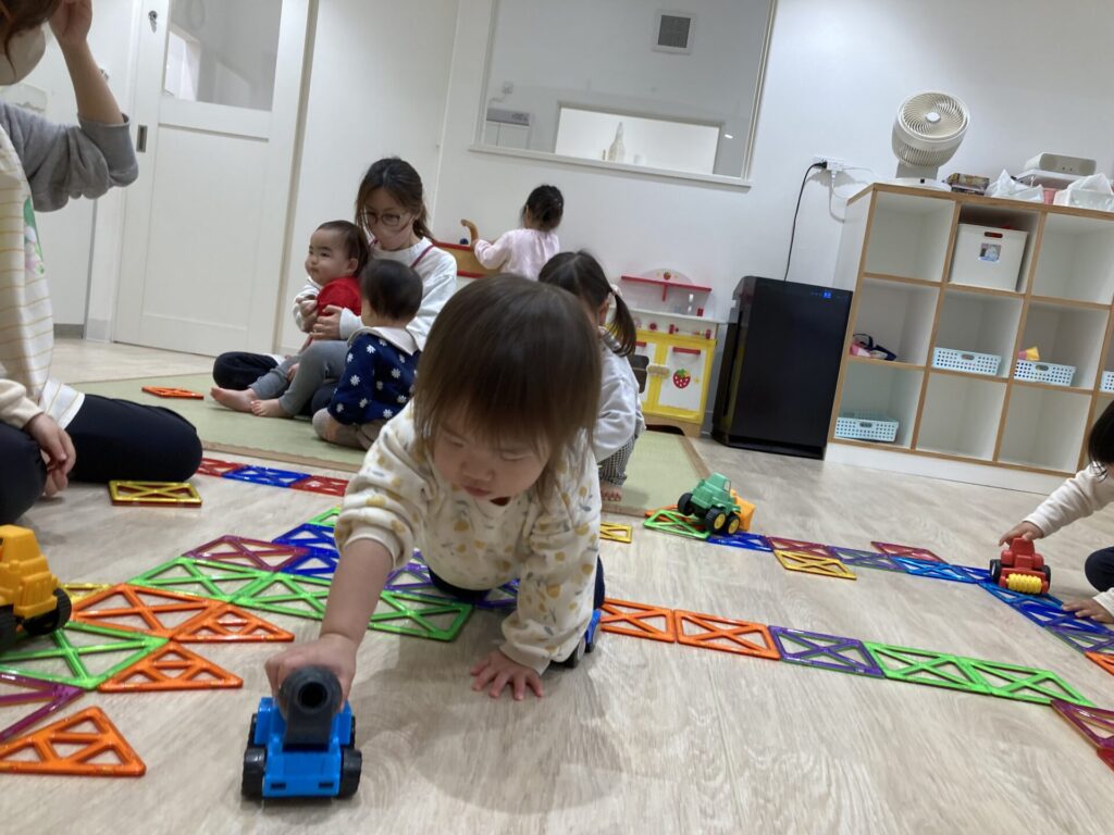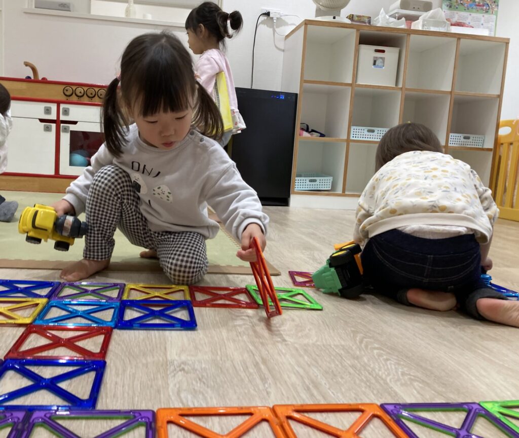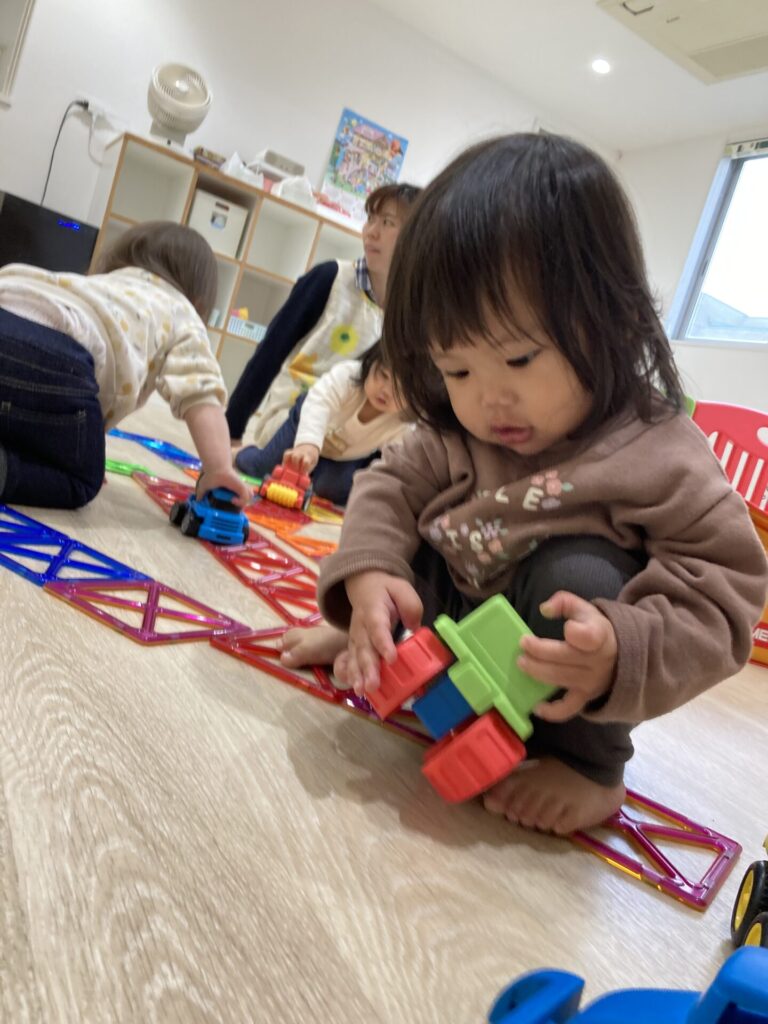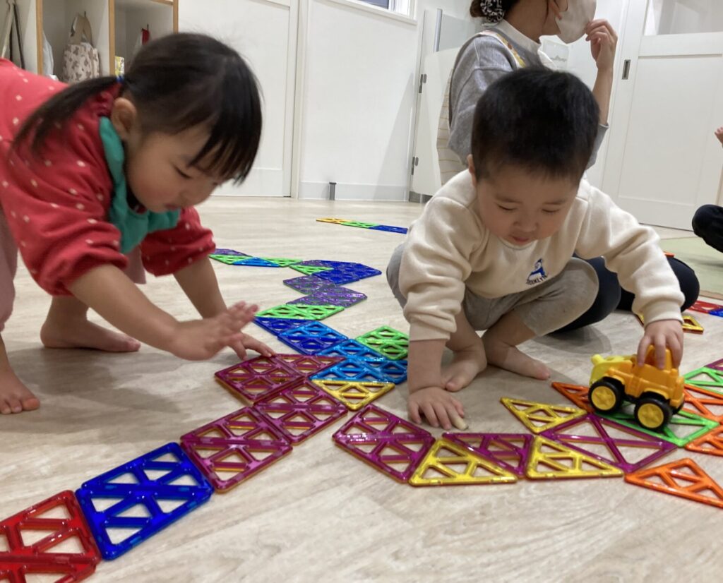 ここのお部屋では、マグネットの長い長い道路ができました。