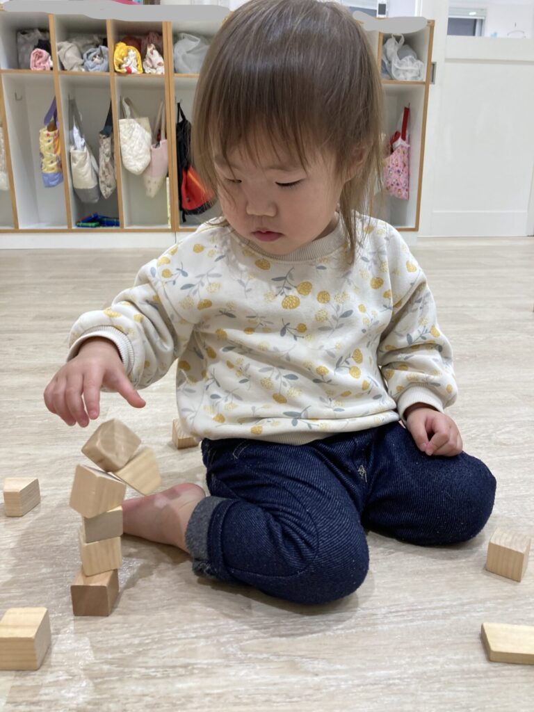 小さな積み木もバランスよく積んでいきます。
