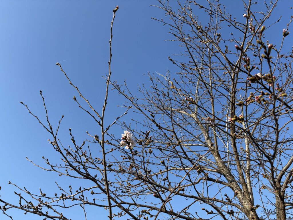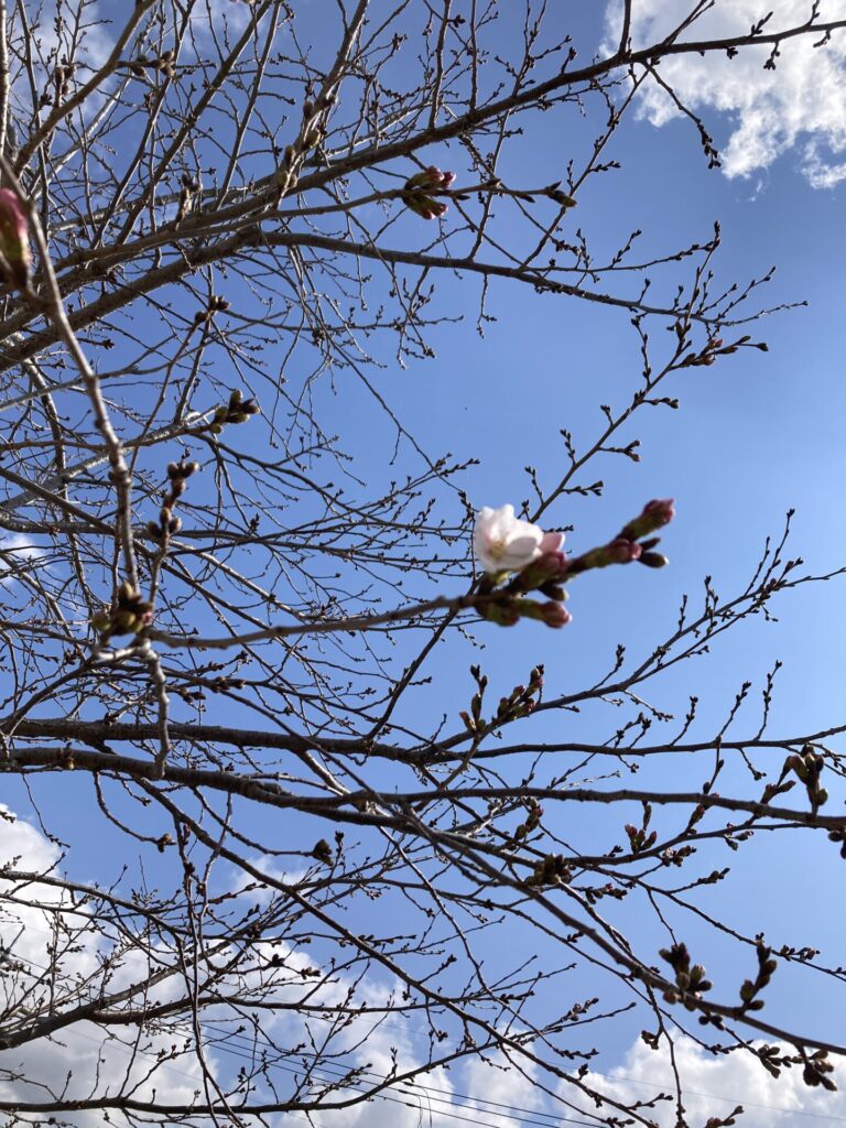 午後おやつを食べて外へ出てみたら、咲いている桜が7.8輪に増えていました😆