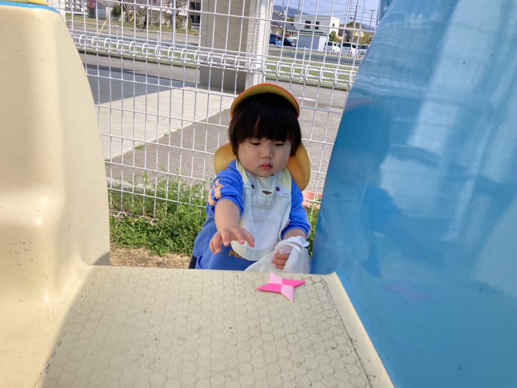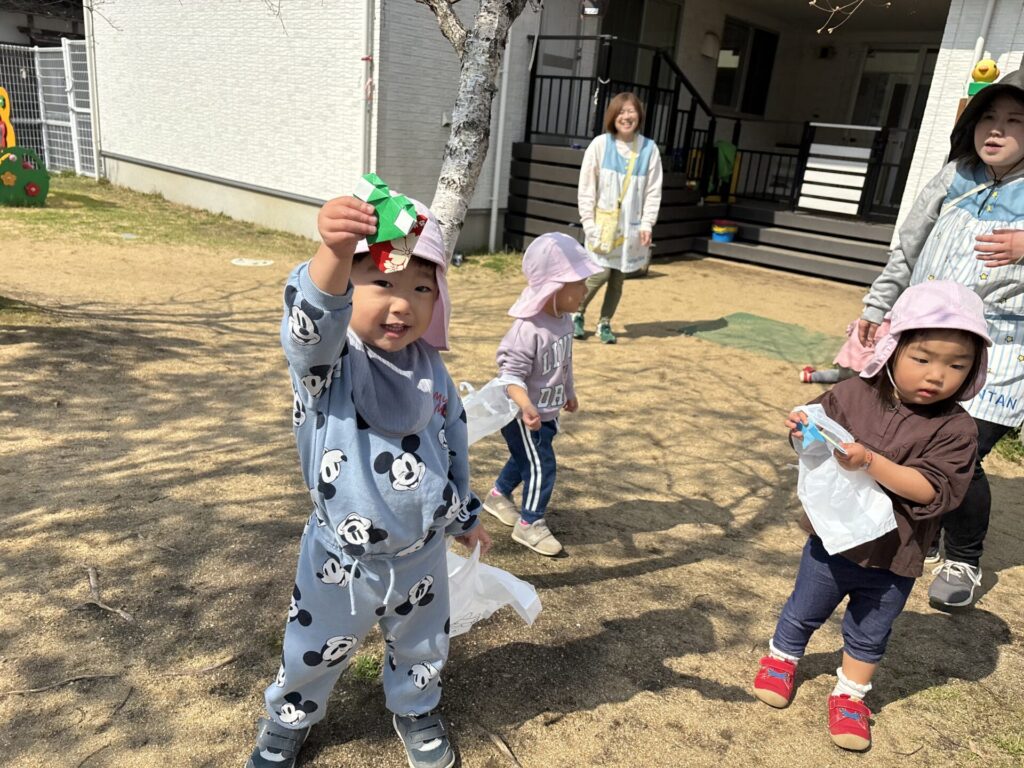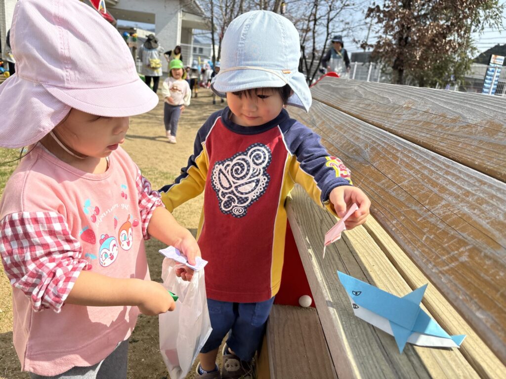 小さいお友達が探すのを待ちきれないみずき組さんが、
