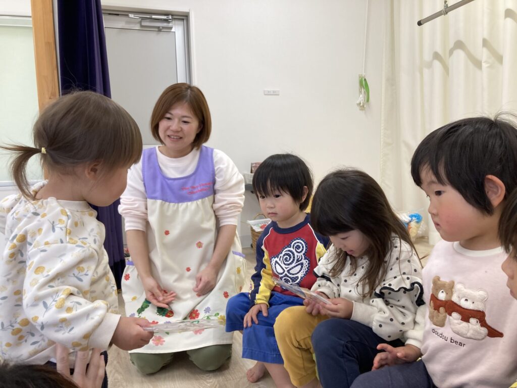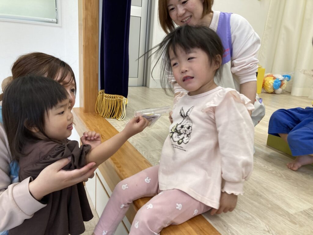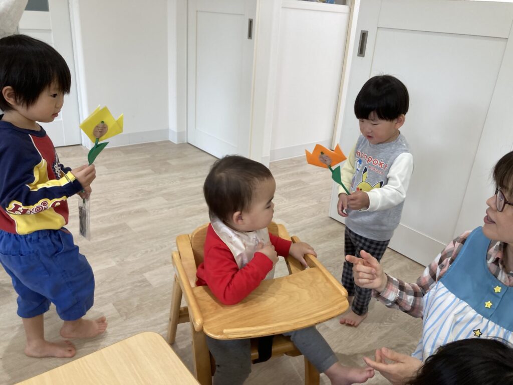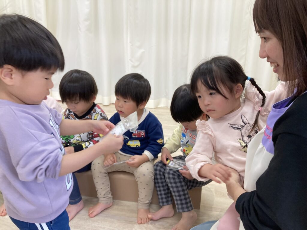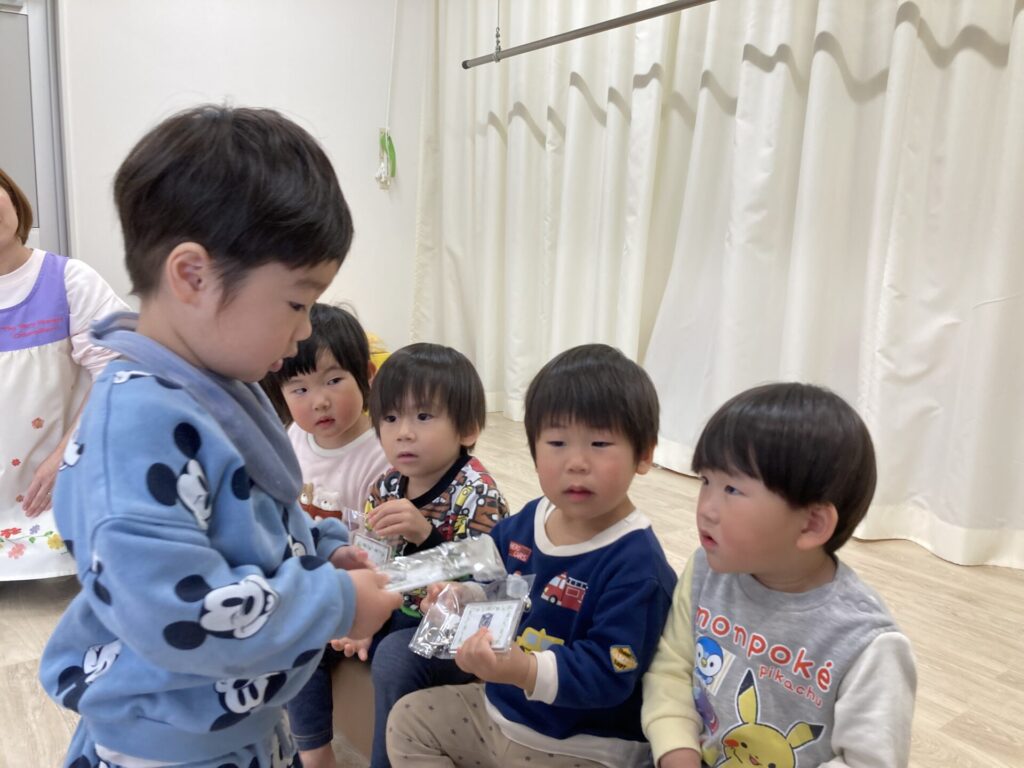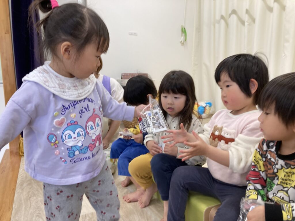 みずき組さんからも、小さいお友達にプレゼントを渡しました。