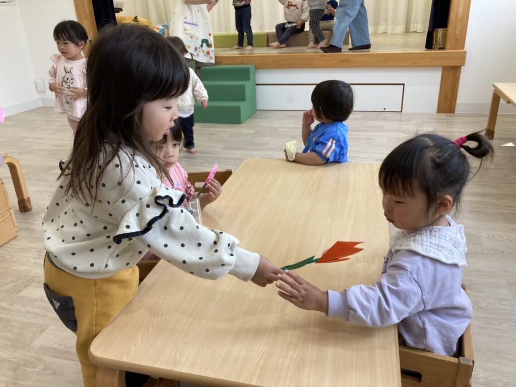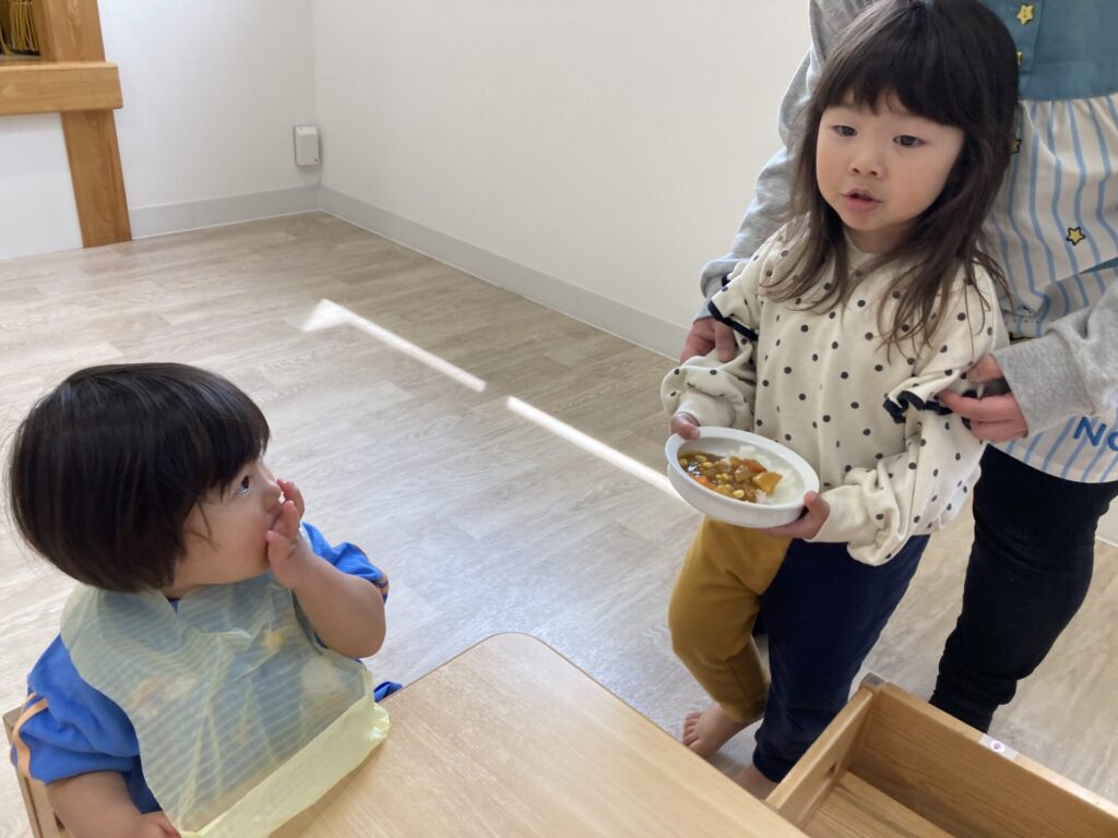 「どうぞ」と持って行ってあげる場面です😊