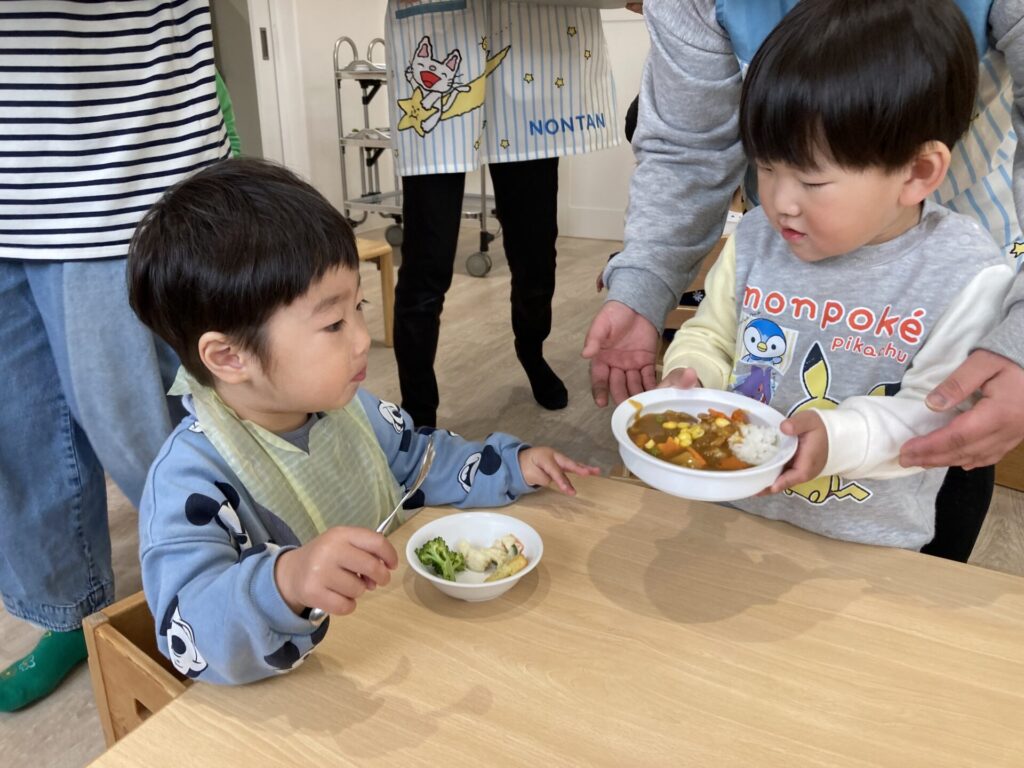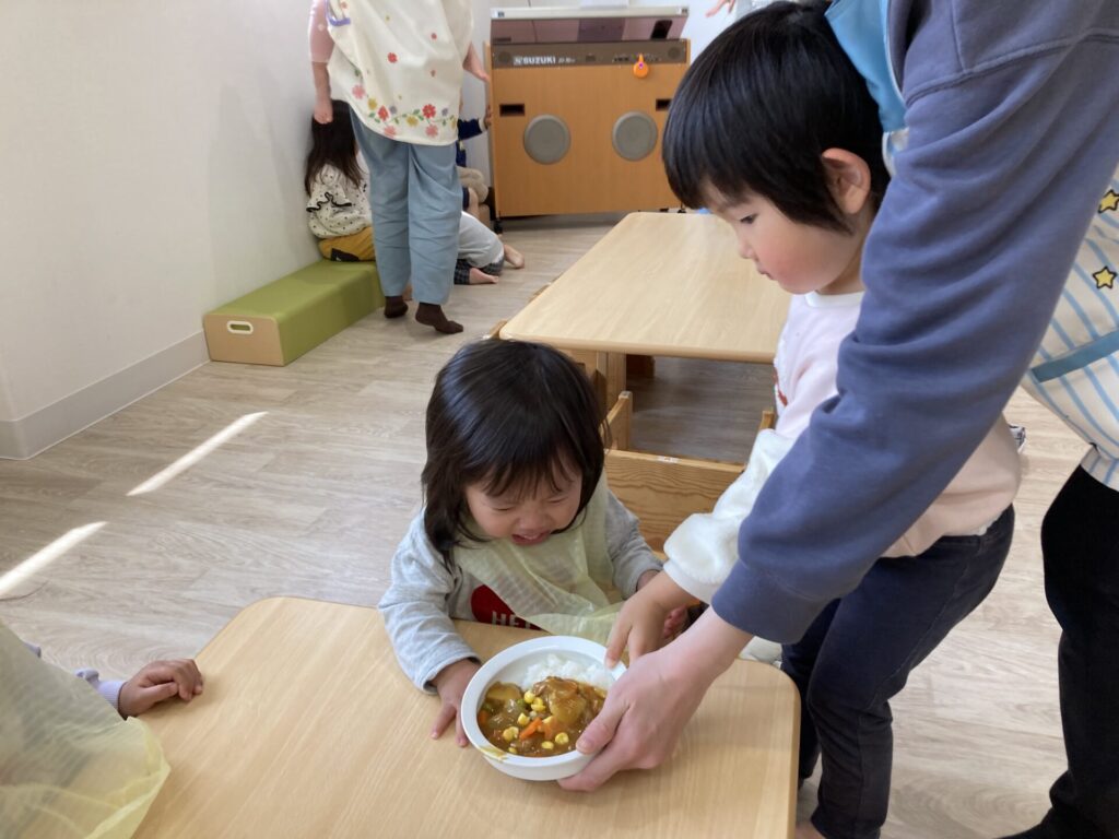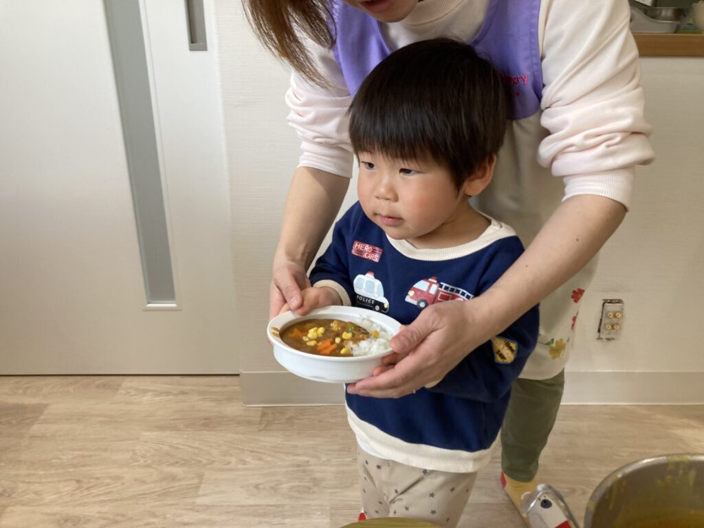給食室で仕上げてもらったカレーライスを