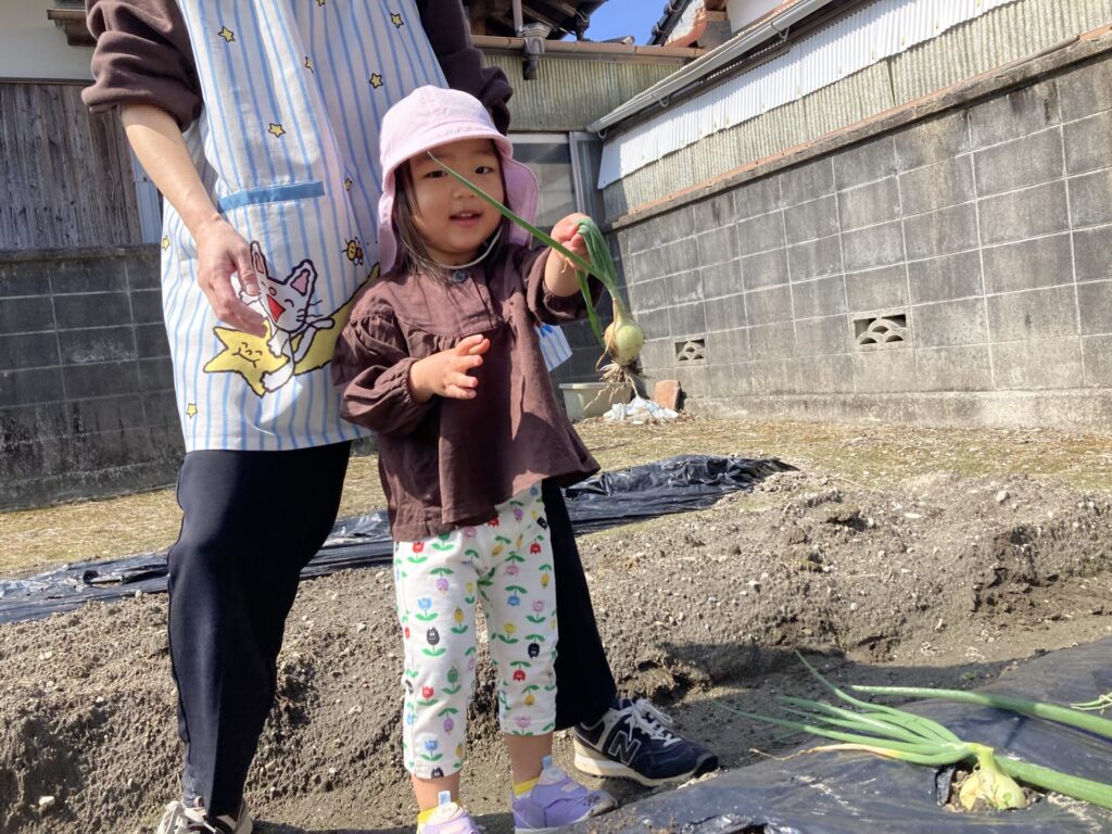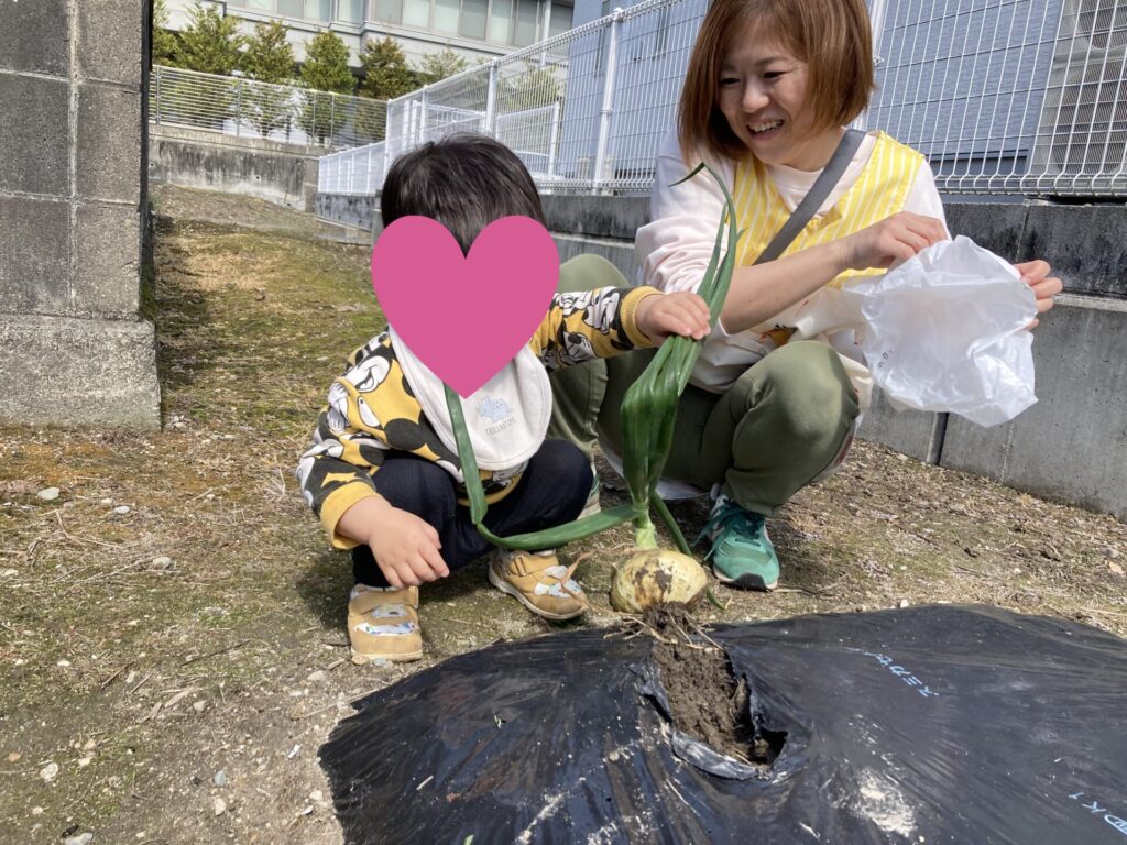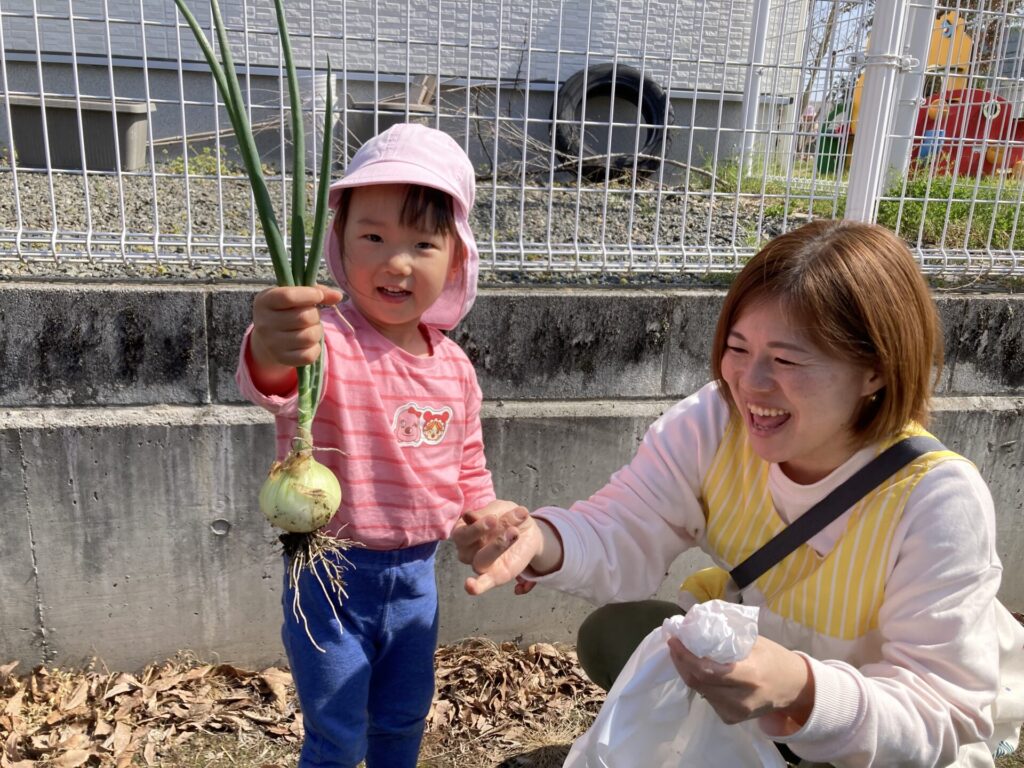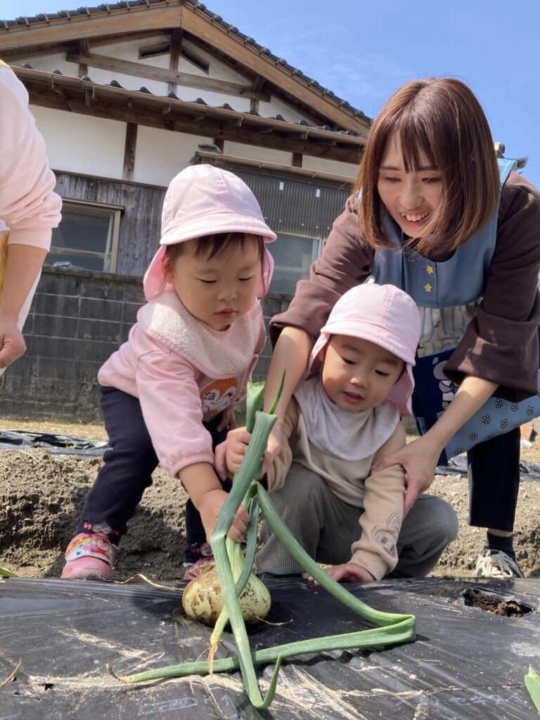みずき組さんは隣のおじいちゃんの畑に玉ねぎの収穫に行きました。