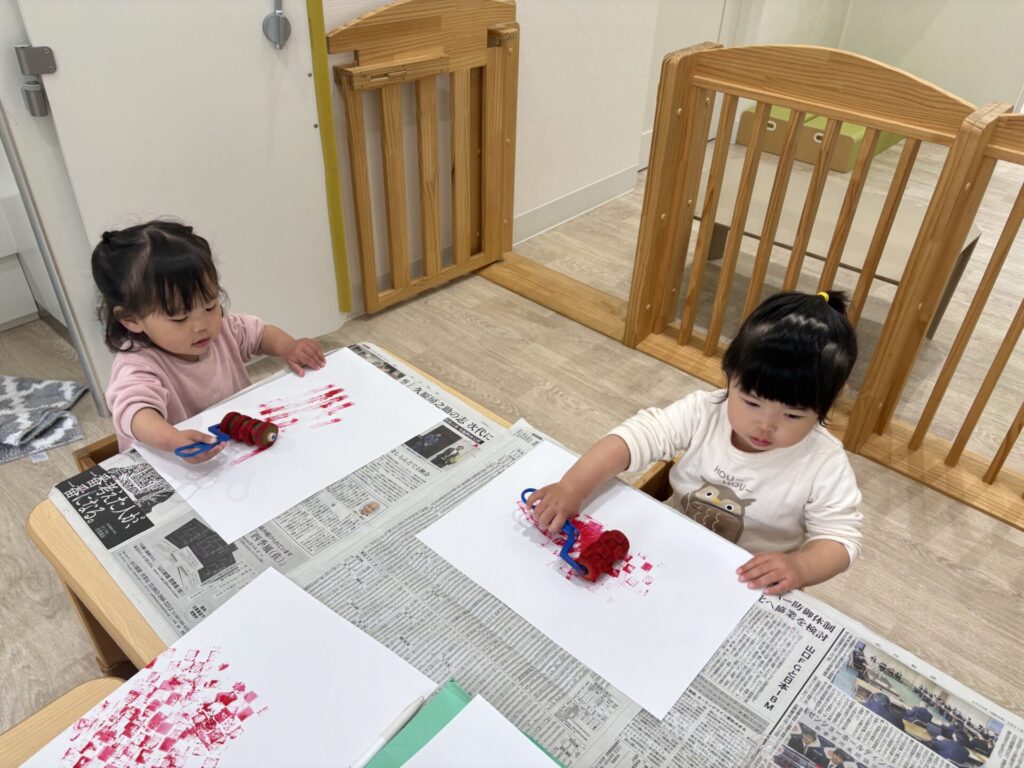 かえで組さんは絵の具遊びもしてみました。