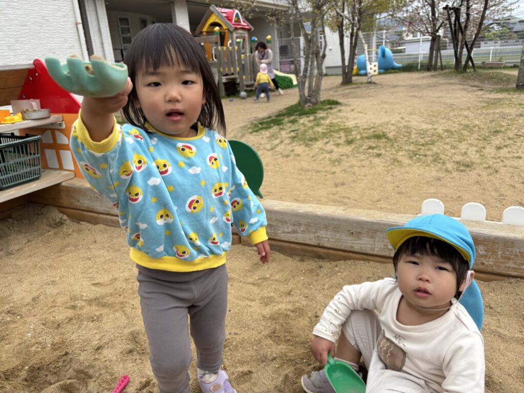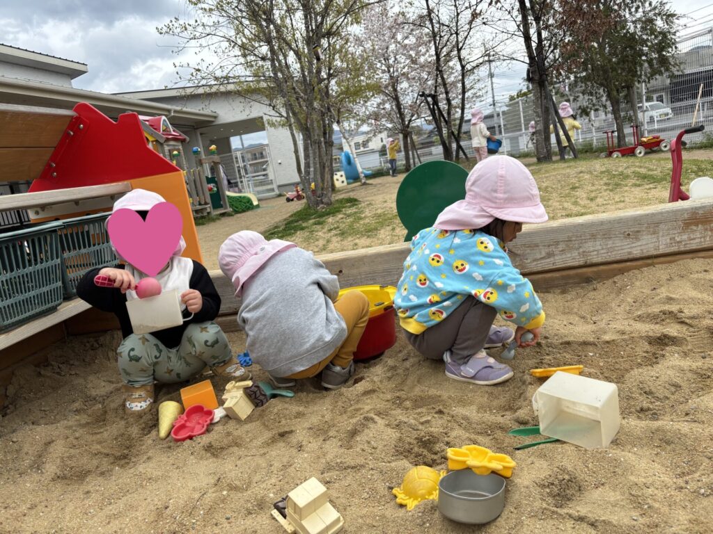 砂場では、黙々と砂と向き合う子どもたちが・・・