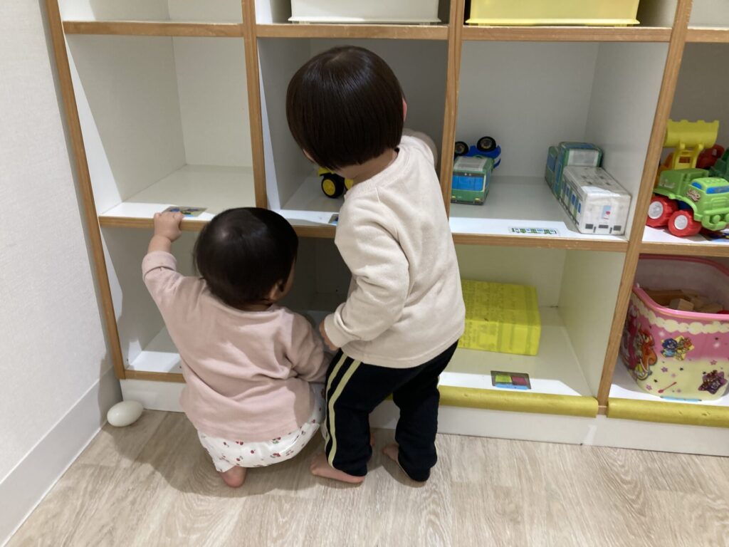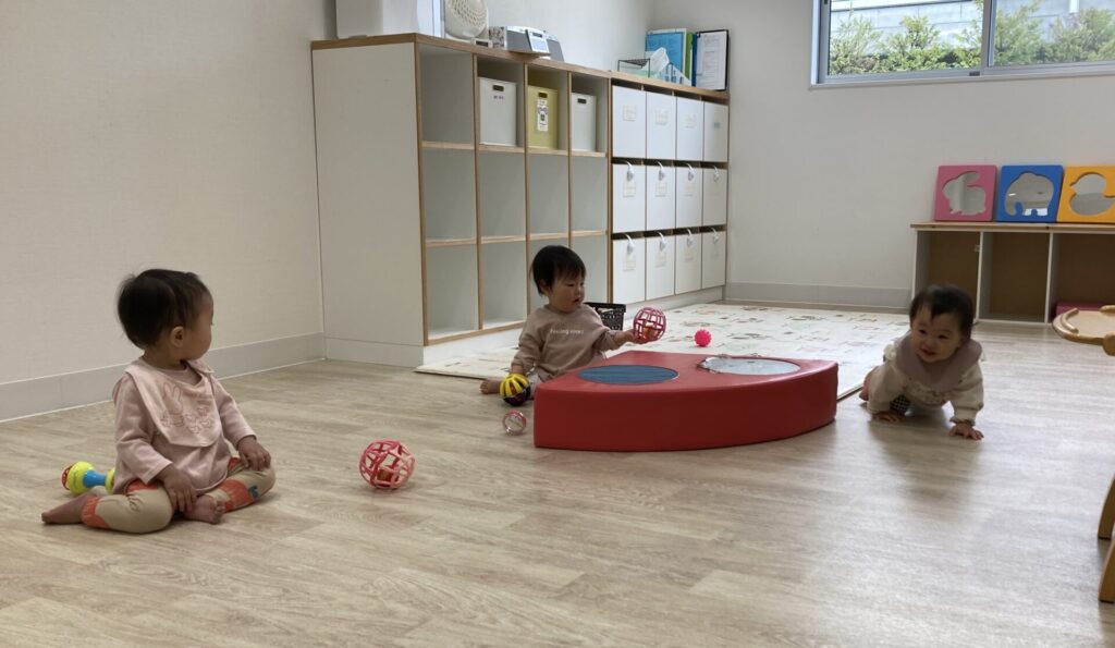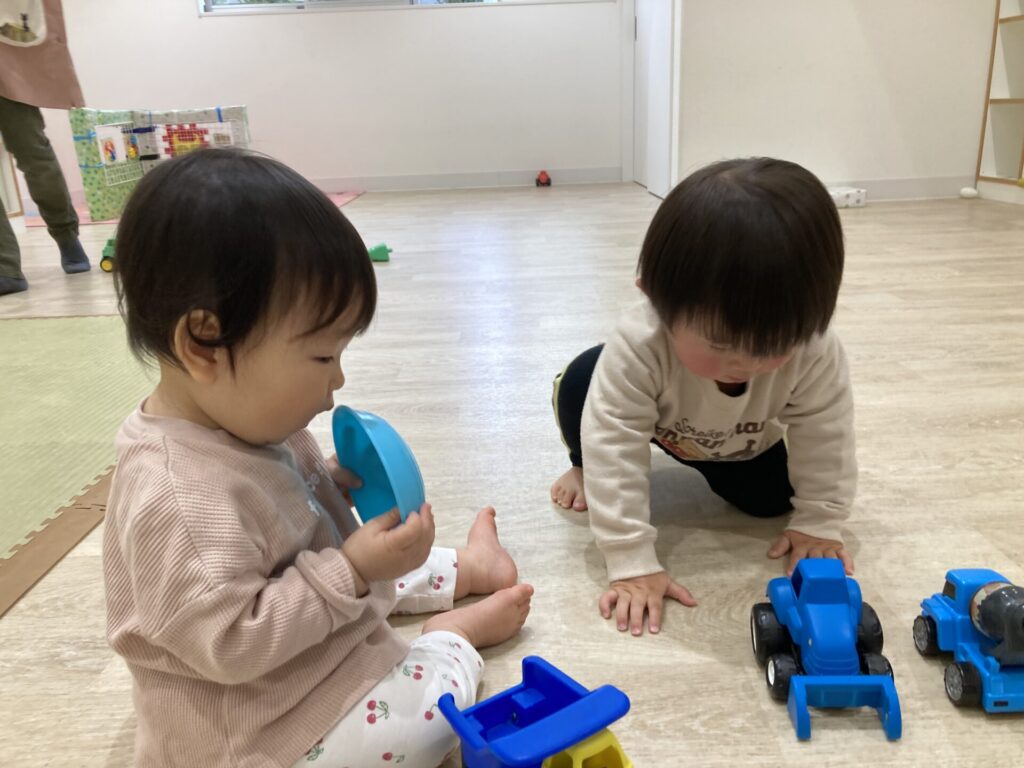 マットの回りをたくさんハイハイしたりボールや車で遊んだりしました。