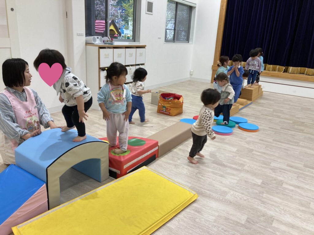 雨が続きましたが、お部屋の中でもたくさん身体を動かして遊べました🎶