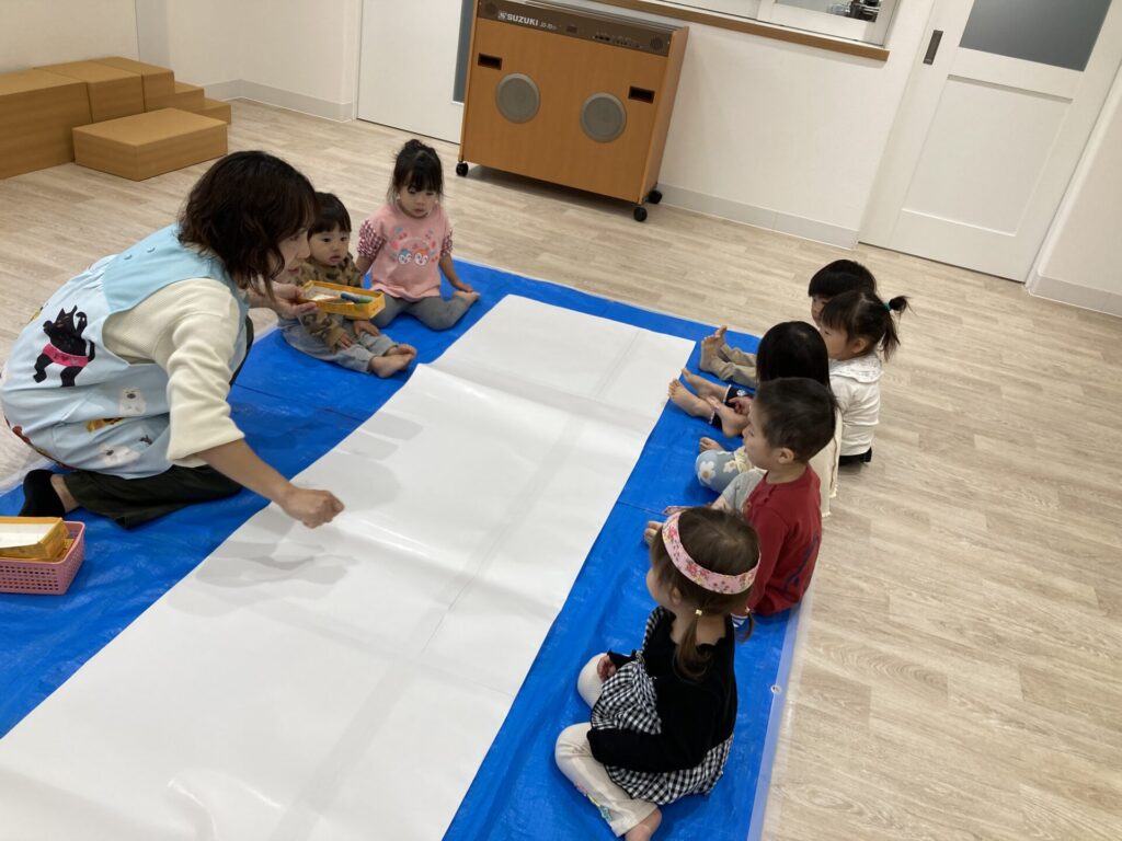 今日も長い大きな紙にお絵描きをしました。