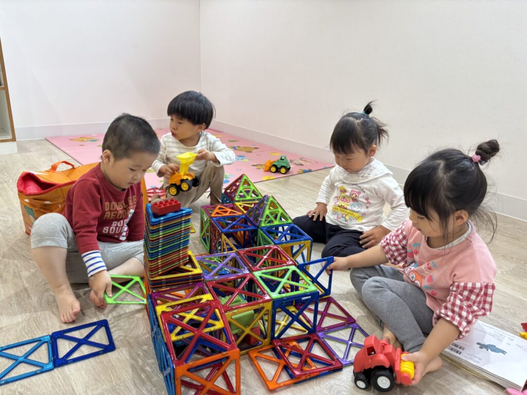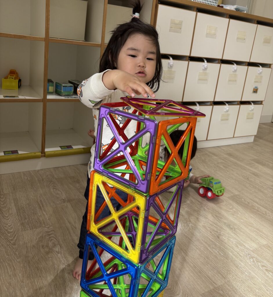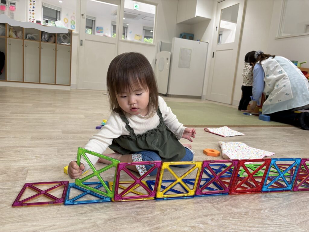 お部屋でマグフォーマーで遊んでいたみずきさん。