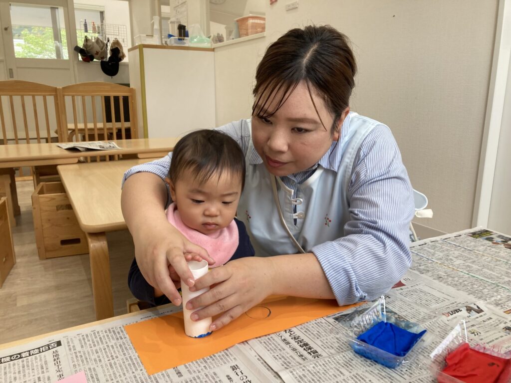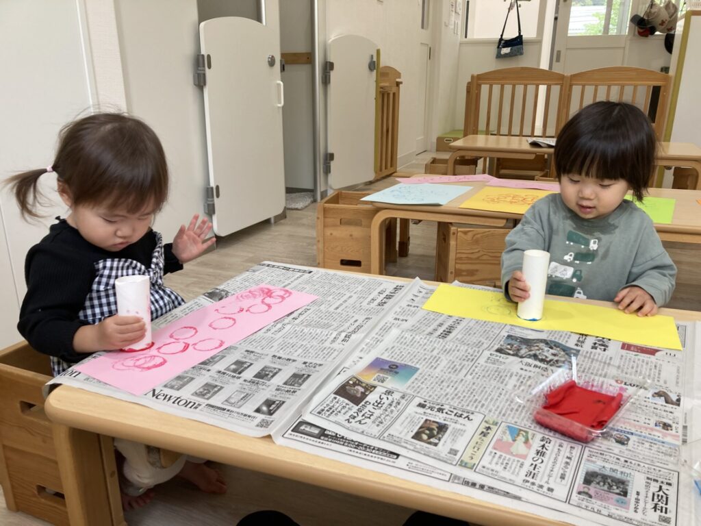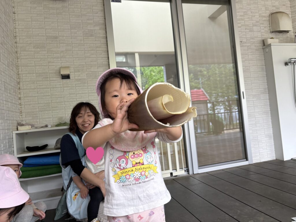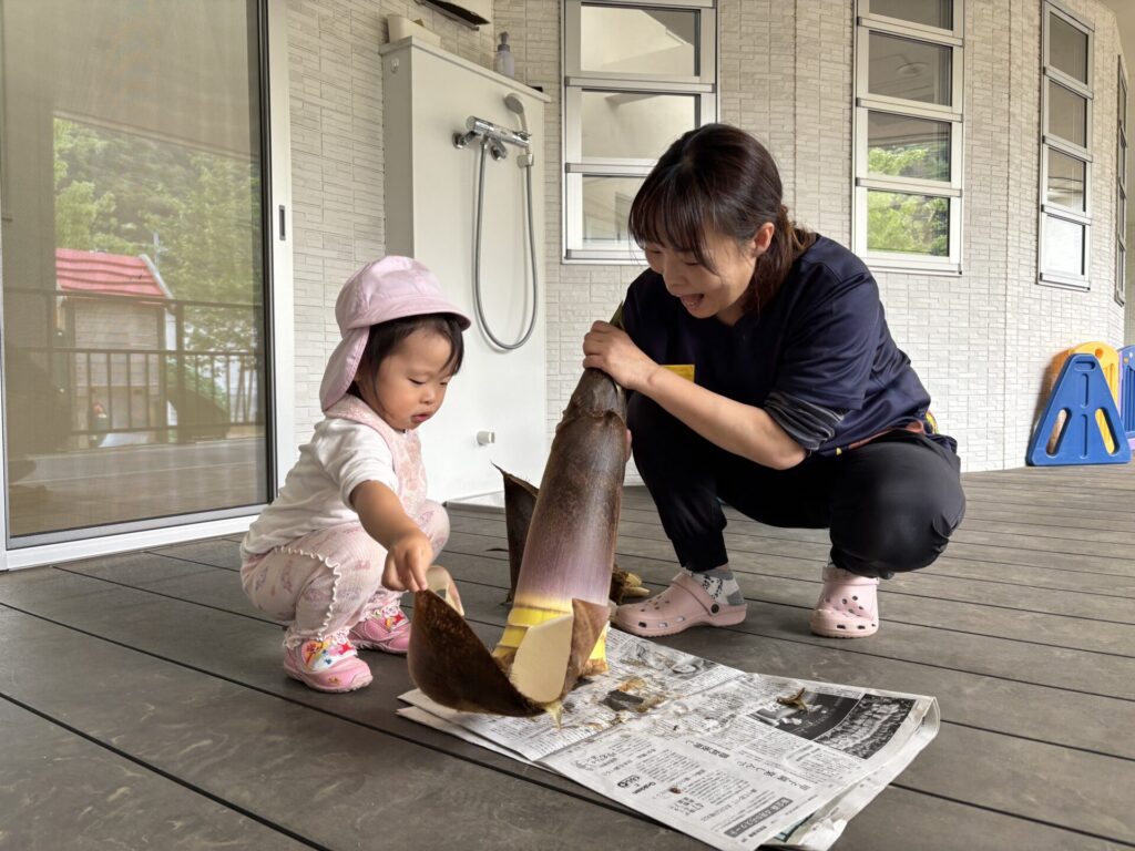 みんな、興味津々で「たけのこさんのおようふく、ぬがせてあげる」