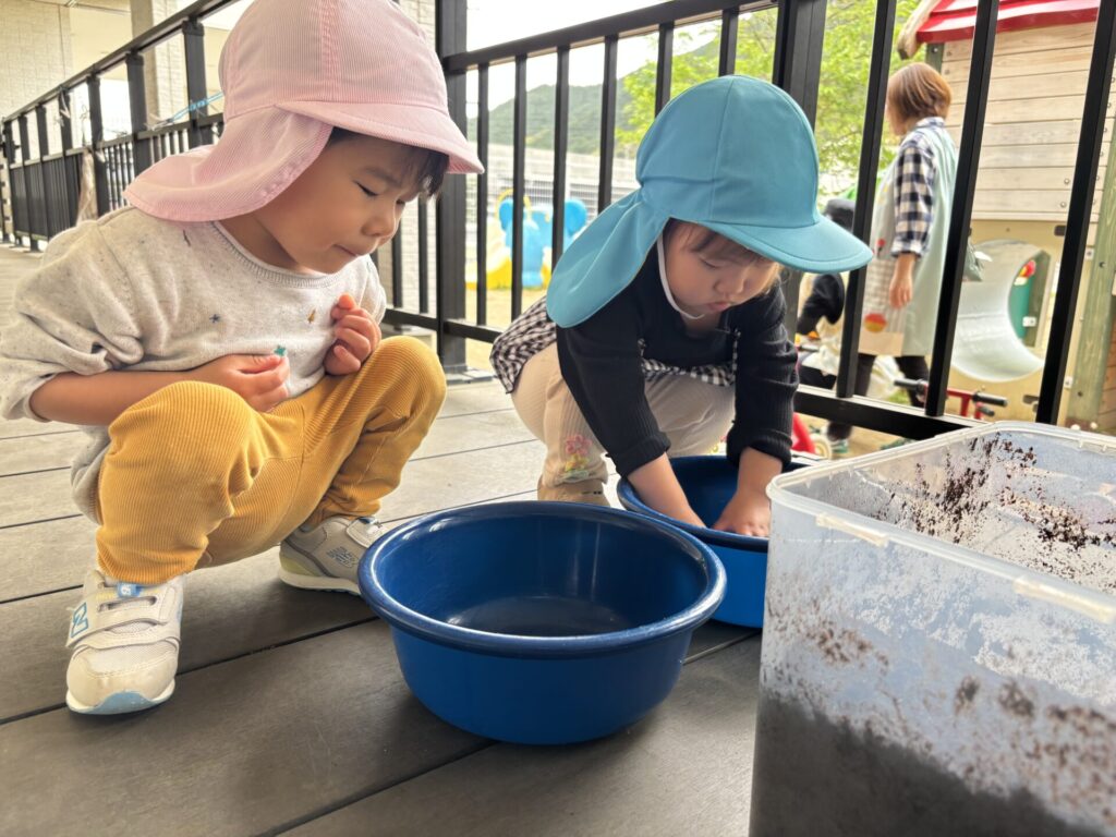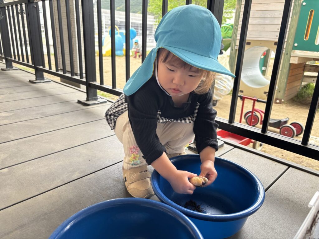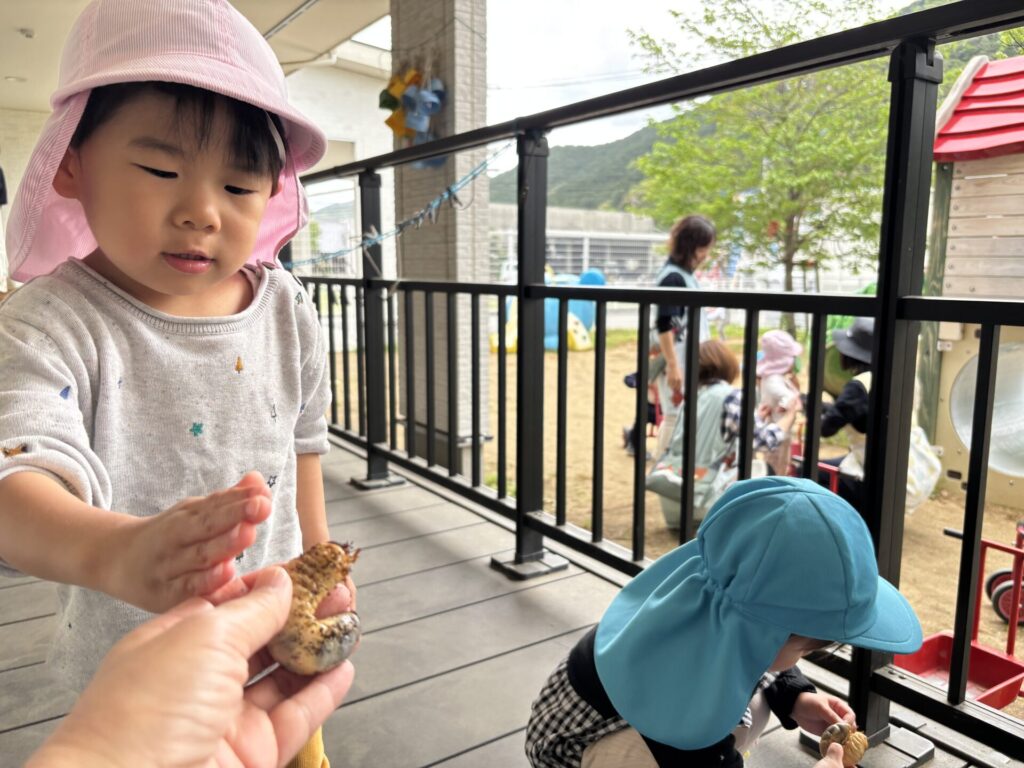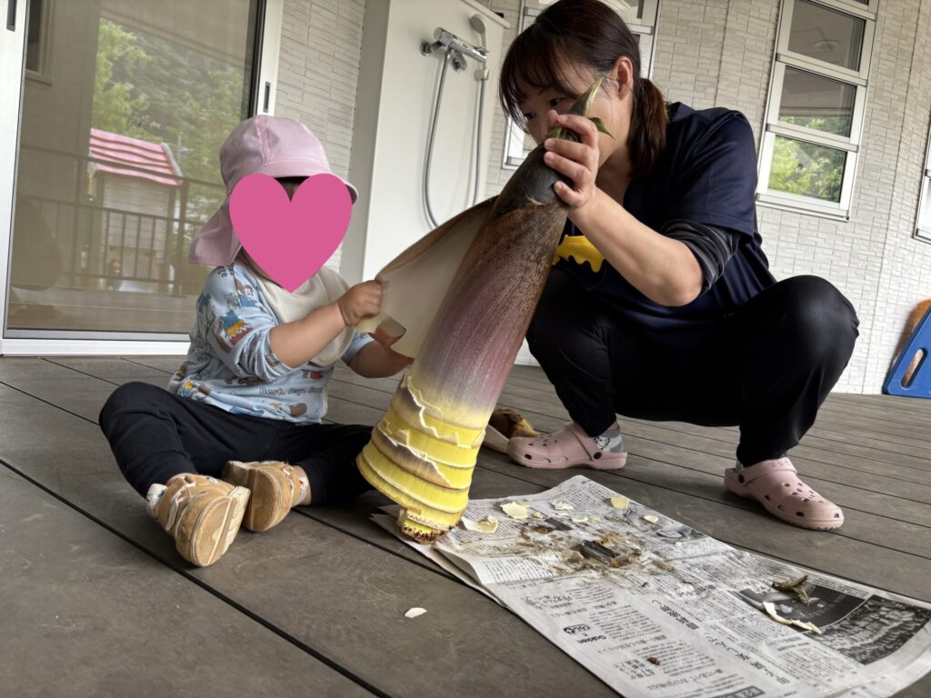 いざたけのこに近付くとちょっぴり腰が引けてしまう子どもたち(笑)